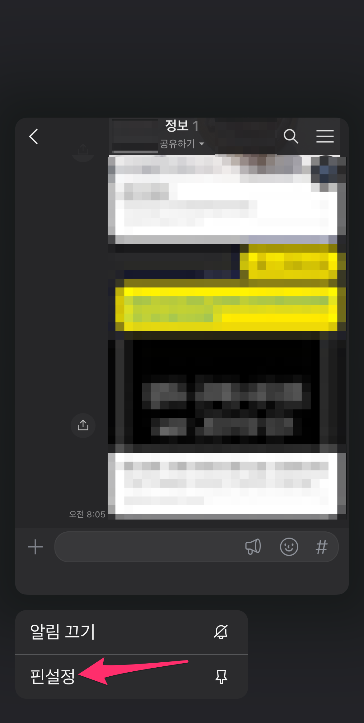 혹시나 안드로이드폰이라면 상단 고정이라는 메뉴로 보이실 겁니다.