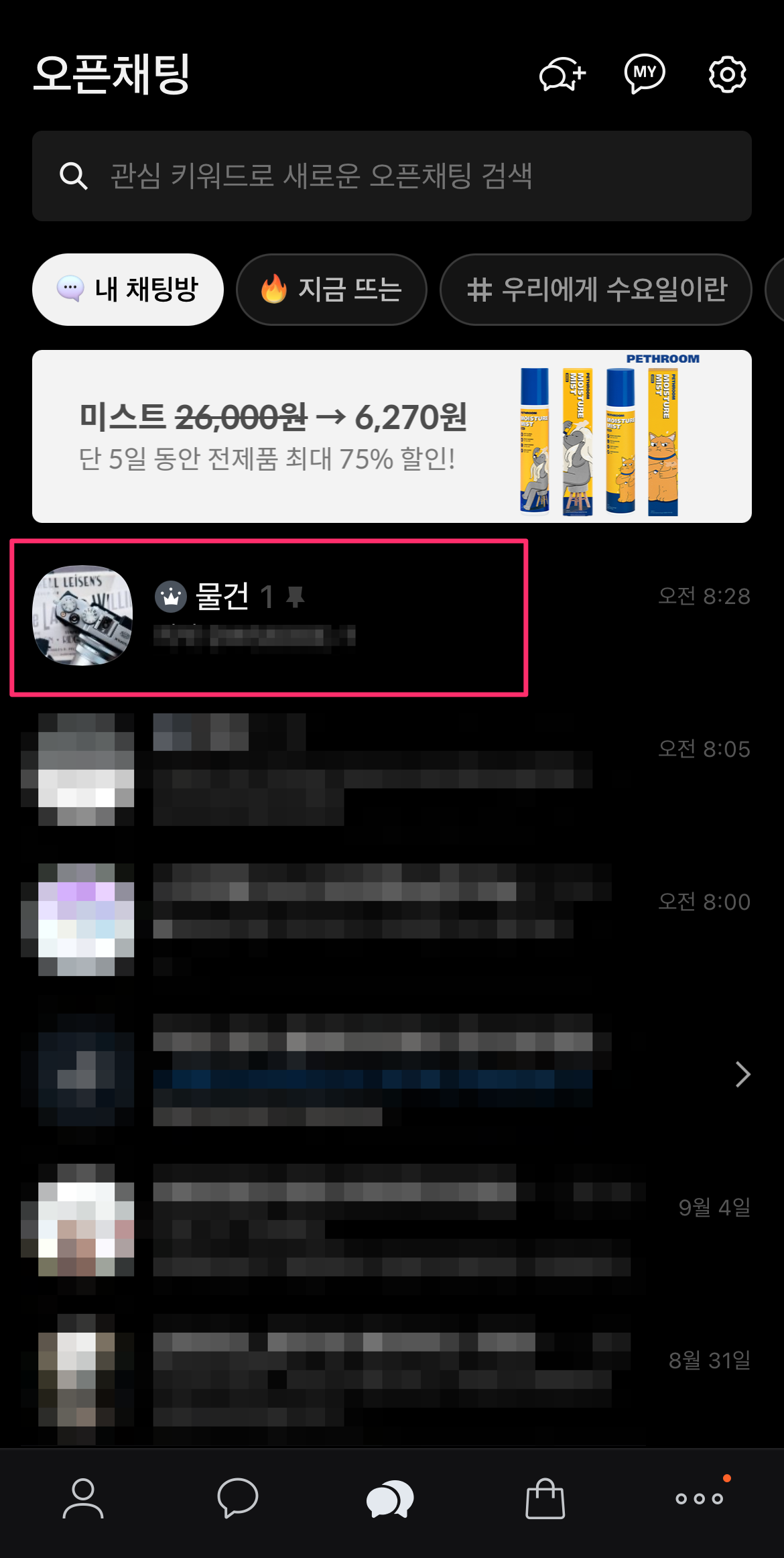 오픈채팅 목록에서 생성된 그룹 채팅을 확인합니다.