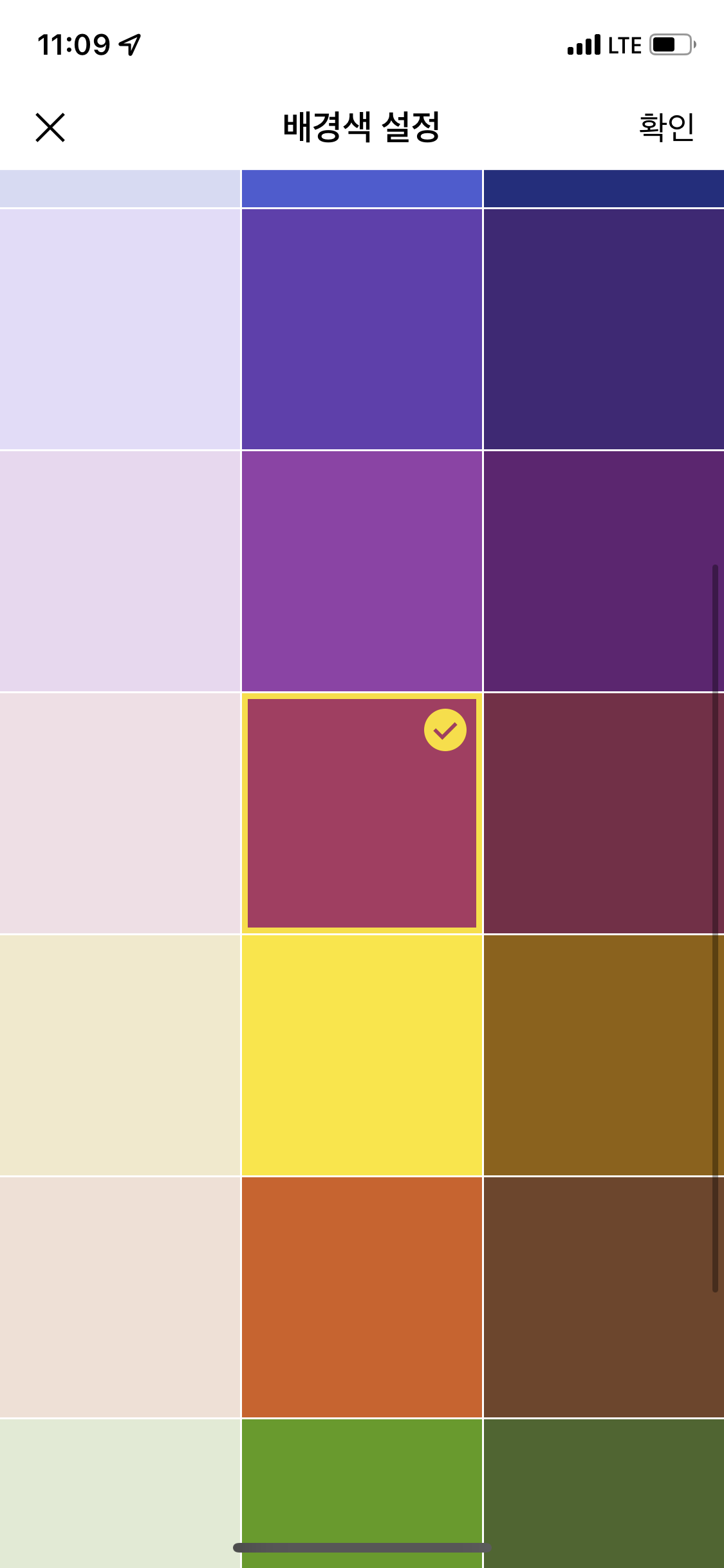 앨범에 있는 사진이 결정되면 배경색 설정 버튼을 터치해서 원하는 배경색을 선택합니다.