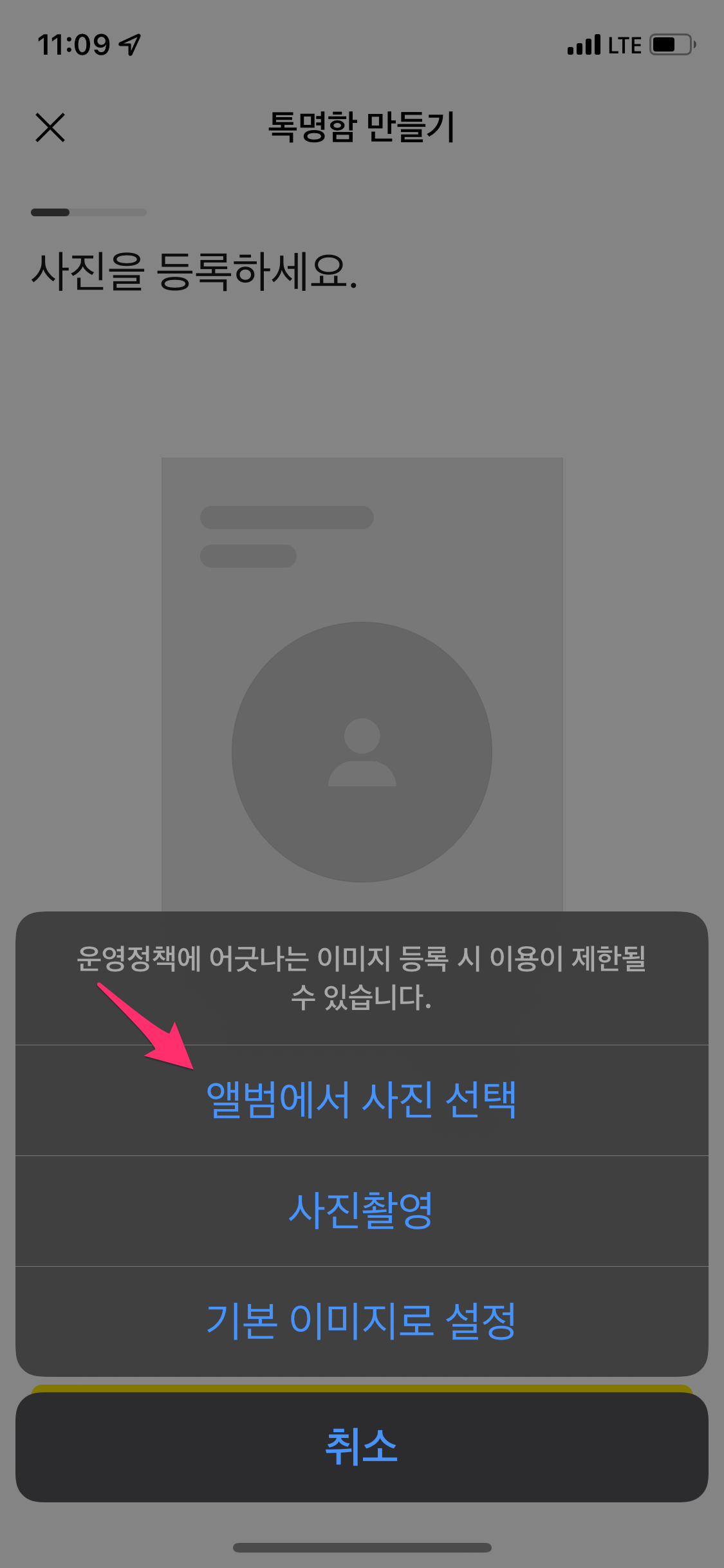 명함에 사용할 사진을 등록해 보겠습니다.
