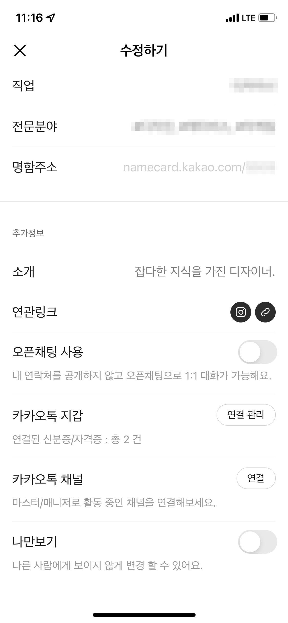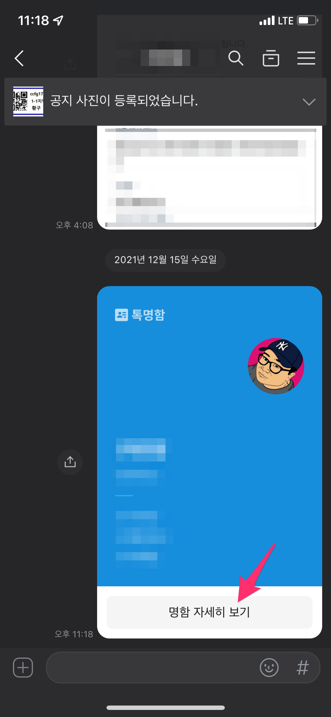 명함을 받으신 분들에게는 톡명함이 이런 식으로 보이게 됩니다.