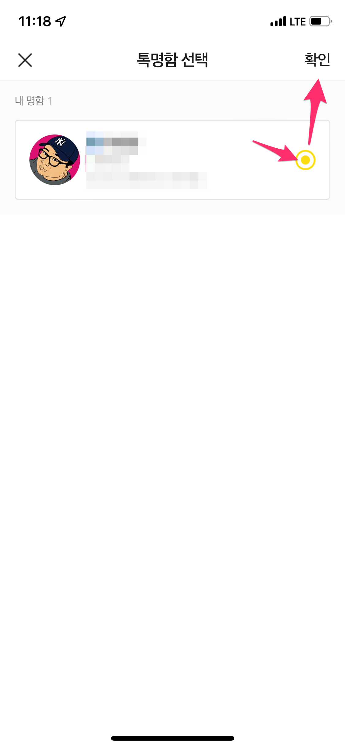 원하는 명함을 선택하고 확인을 누르면 톡으로 명함이 발송됩니다.