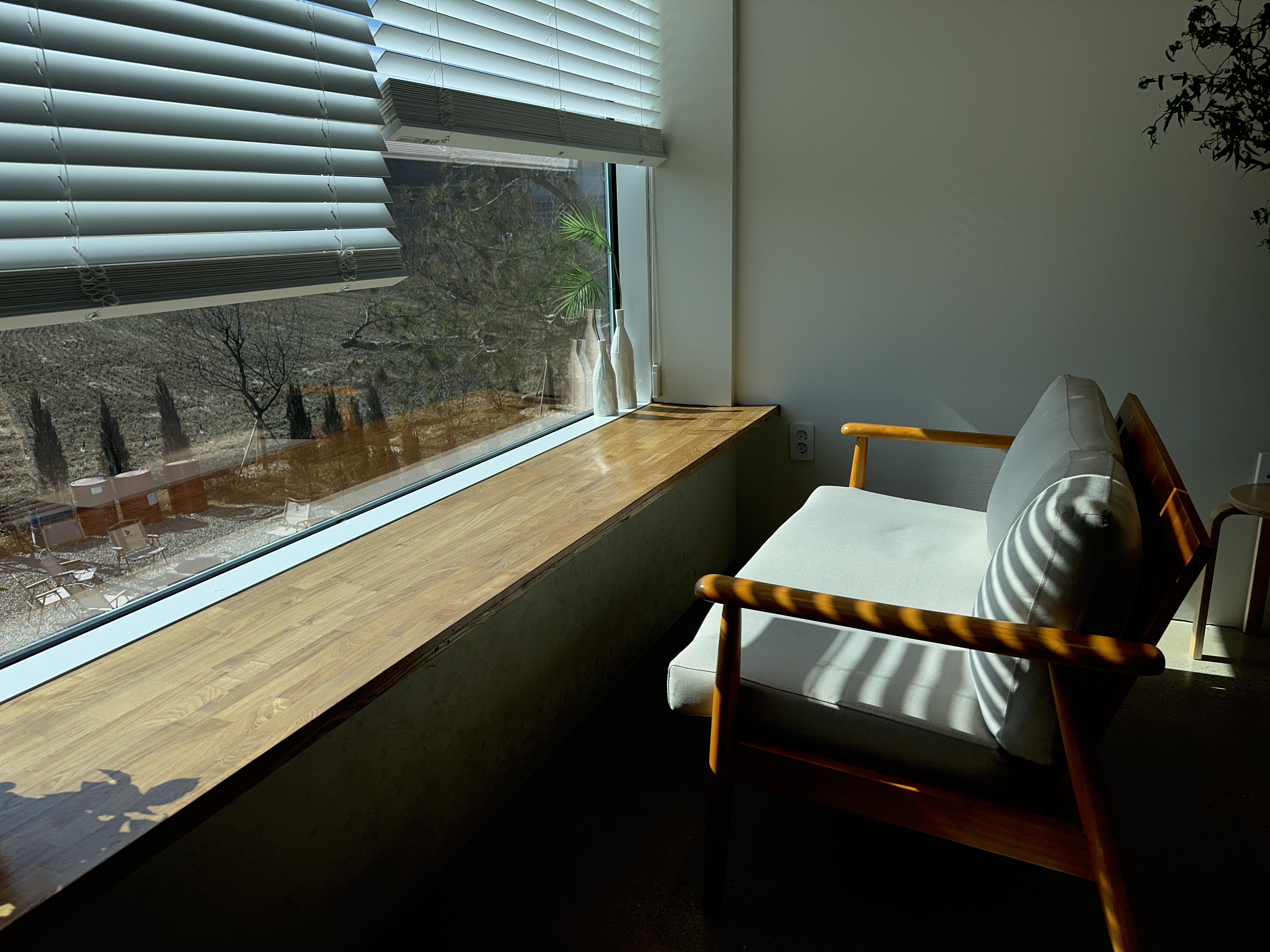 화이트 톤의 인테리어에 햇빛이 들어오니 자연스러운 채광을 느낄 수 있습니다.