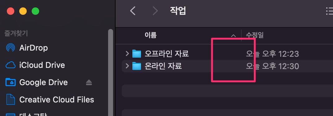 작업 중인 파일이나 폴더는 맥북에 저장해서 사용하지만 작업이 끝난 것이나 자료용은 굳이 노트북에 있을 이유가 없기 때문 클라우드에만 자료를 남겨둡니다.