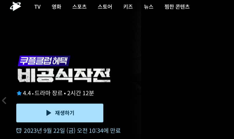 근데, 오늘 쿠팡 플레이를 접속해 보니 쿠플클럽 혜택으로 비공식작전이 올라왔습니다.
