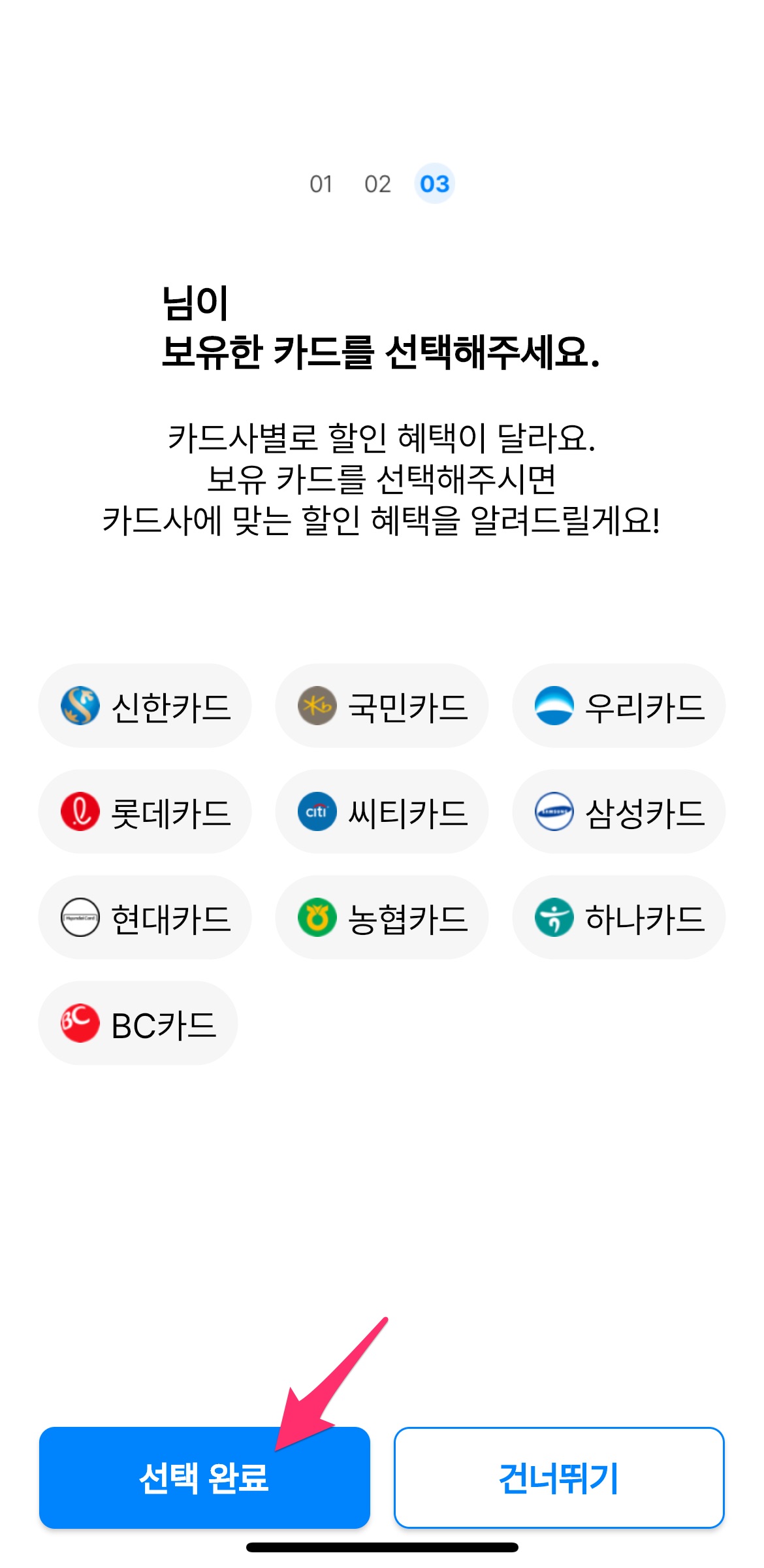 또한 카드사별로 할인 혜택이 있기에 본인 소지하고 있는 카드를 선택하시면 카드사에 맞는 할인 혜택을 알려줍니다.