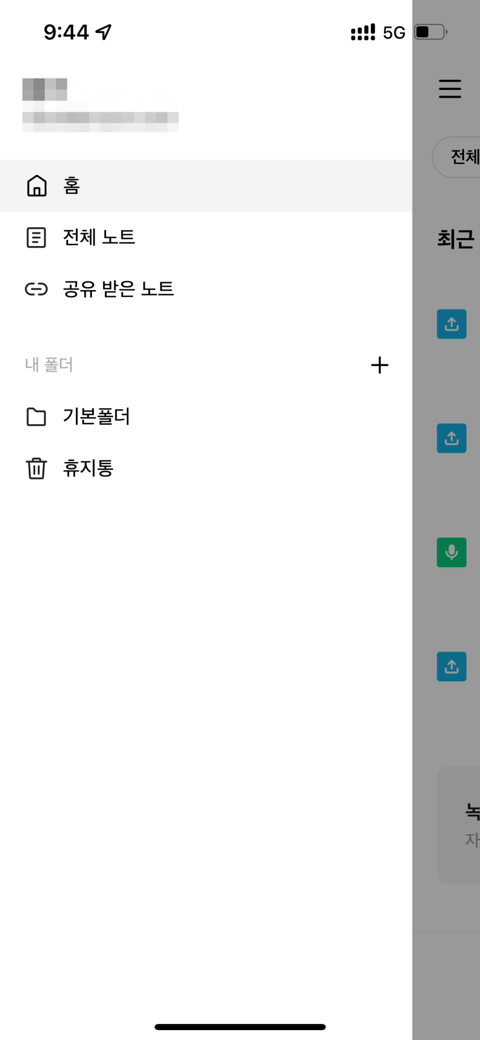 클로바 노트의 홈 화면에서 왼쪽 상단 더보기를 선택하시면 폴더와 노트를 수정할 수 있습니다.