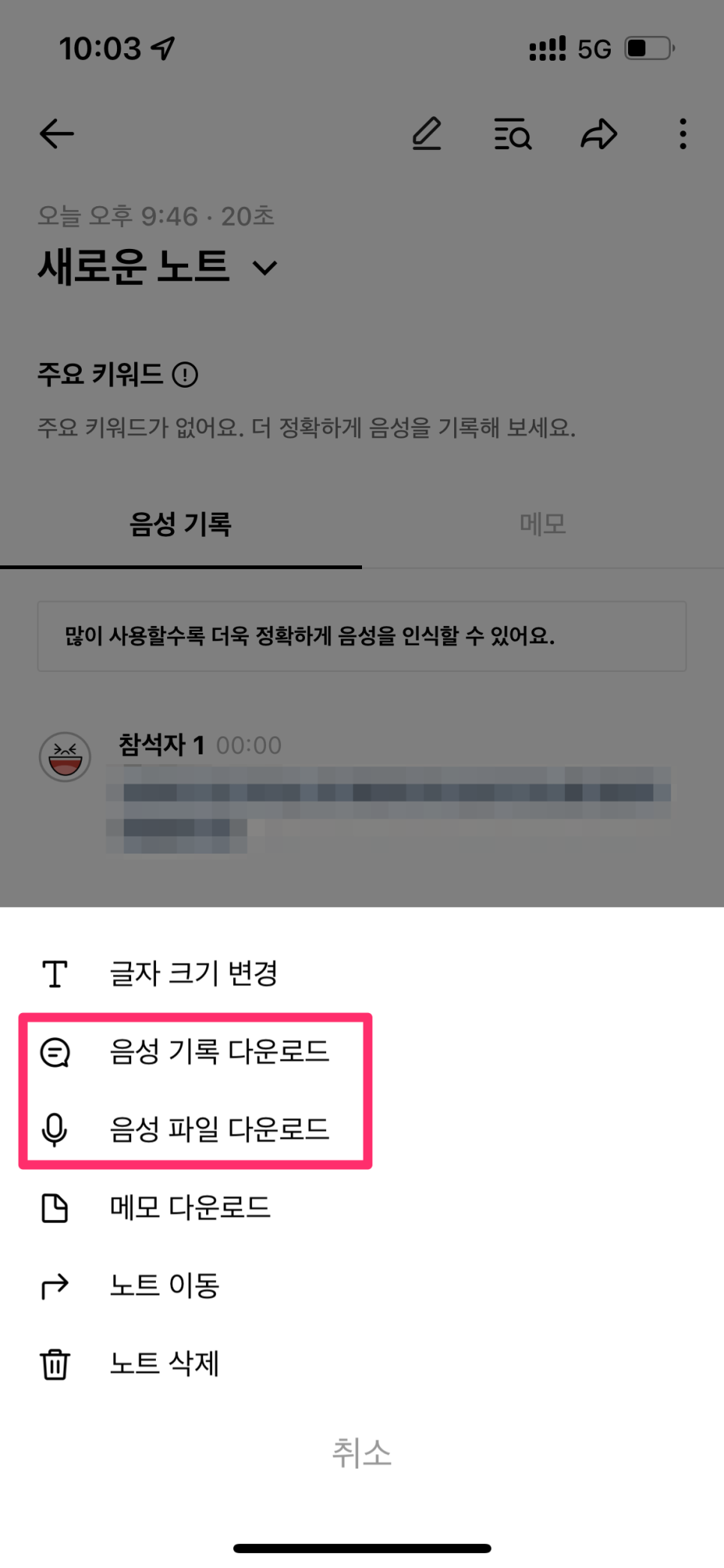 - 글자 크기 변경 : 음성 기록 폰트 크기 변경