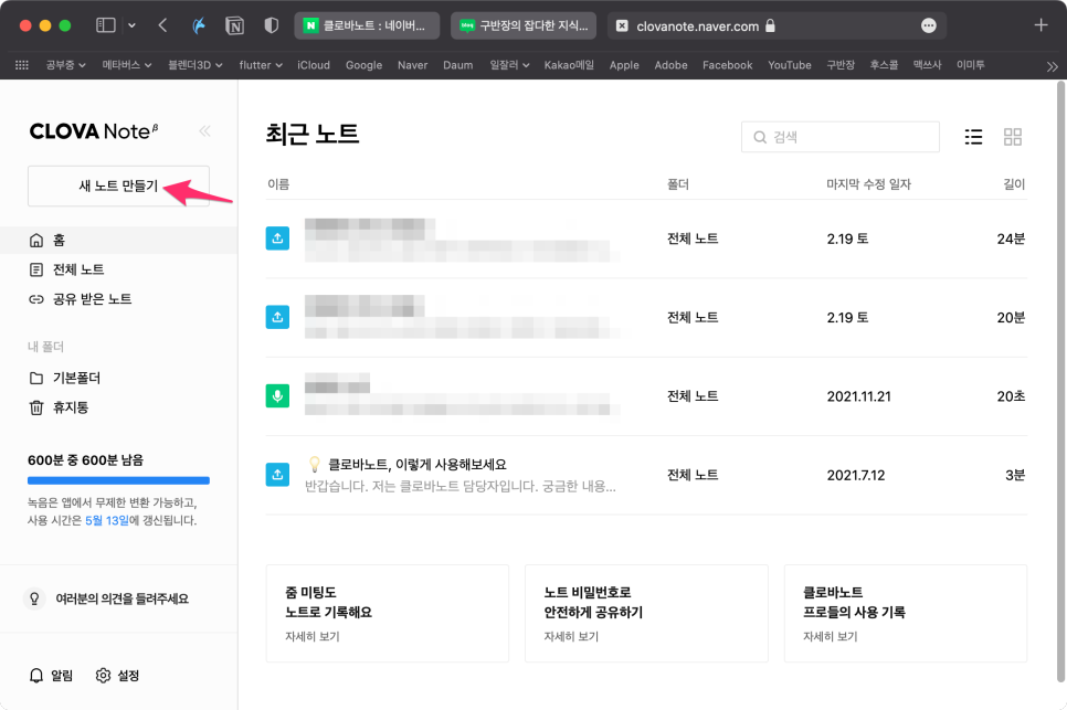 그러면서 음성 파일이나 동영상이나 실시간으로 대화 중에서도 녹취가 되는 프로그램들도 많이 나왔지만 인식률이 그렇게 좋지 않아서 거의 사용을 안 하다가 요즘은 네이버에서 제작한 클로바 노트를 자주 사용하고 있습니다.