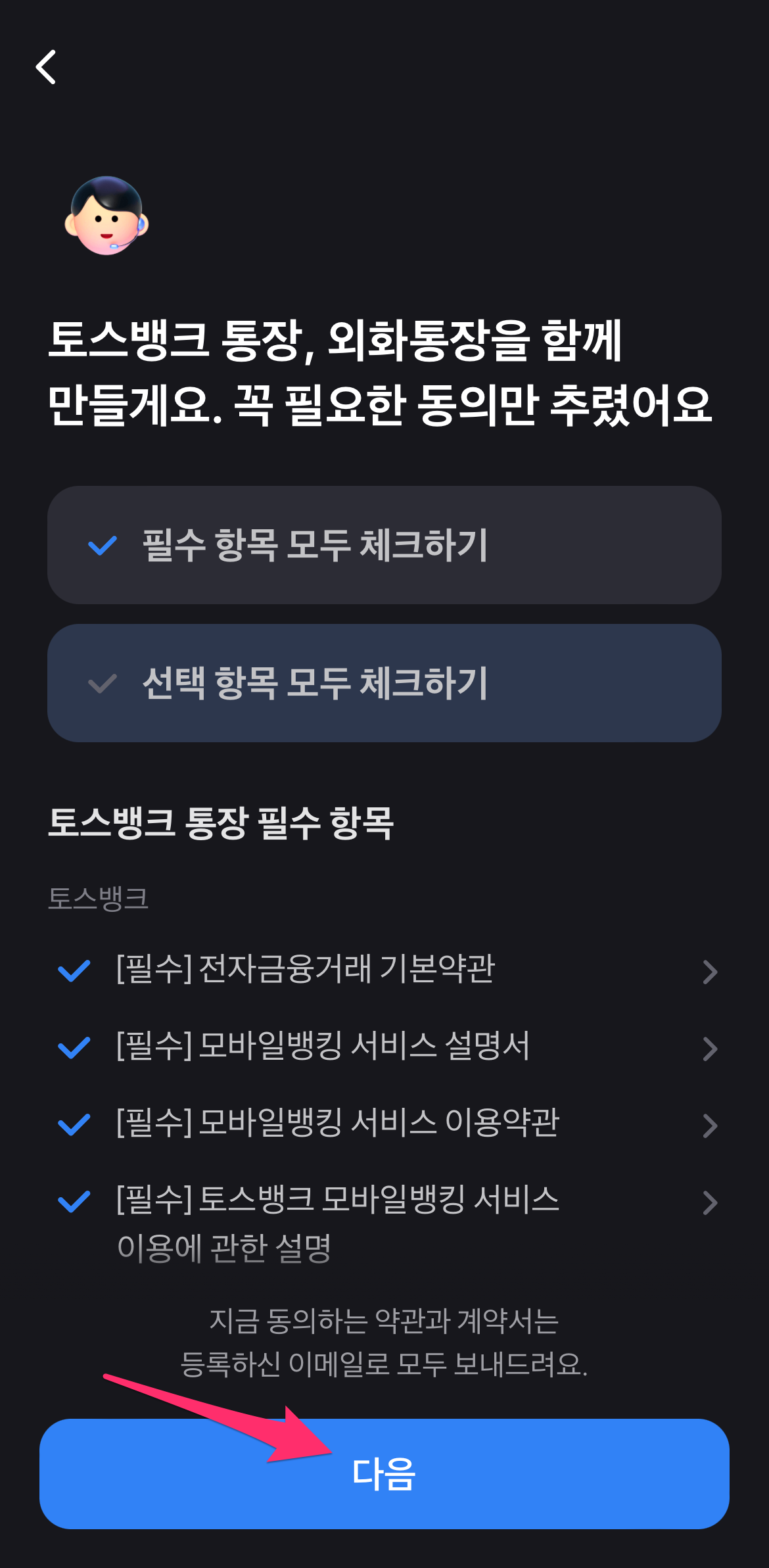 뭐... 다 동의하셔도 되지만 저는 필수 항목만 체크한 후에 다음을 선택합니다.
