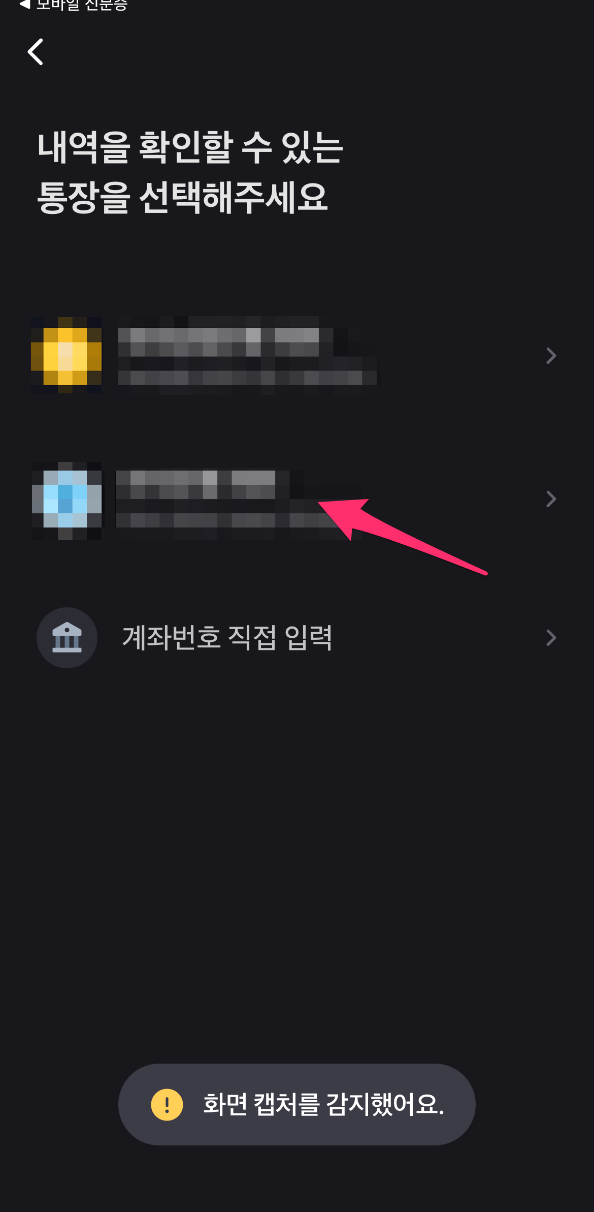통장 인증에서 가지고 있는 통장으로 내 계좌로 1원 받기를 선택합니다.