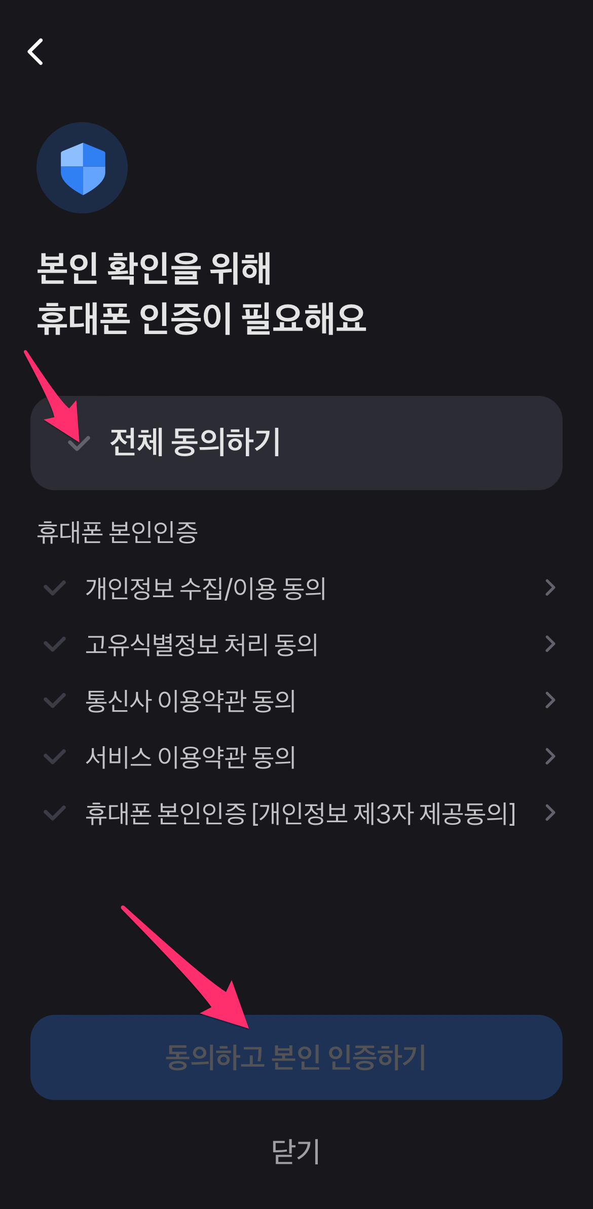 그리고 휴대폰 인증을 마치면 본인 인증이 드디어 끝납니다^^;;