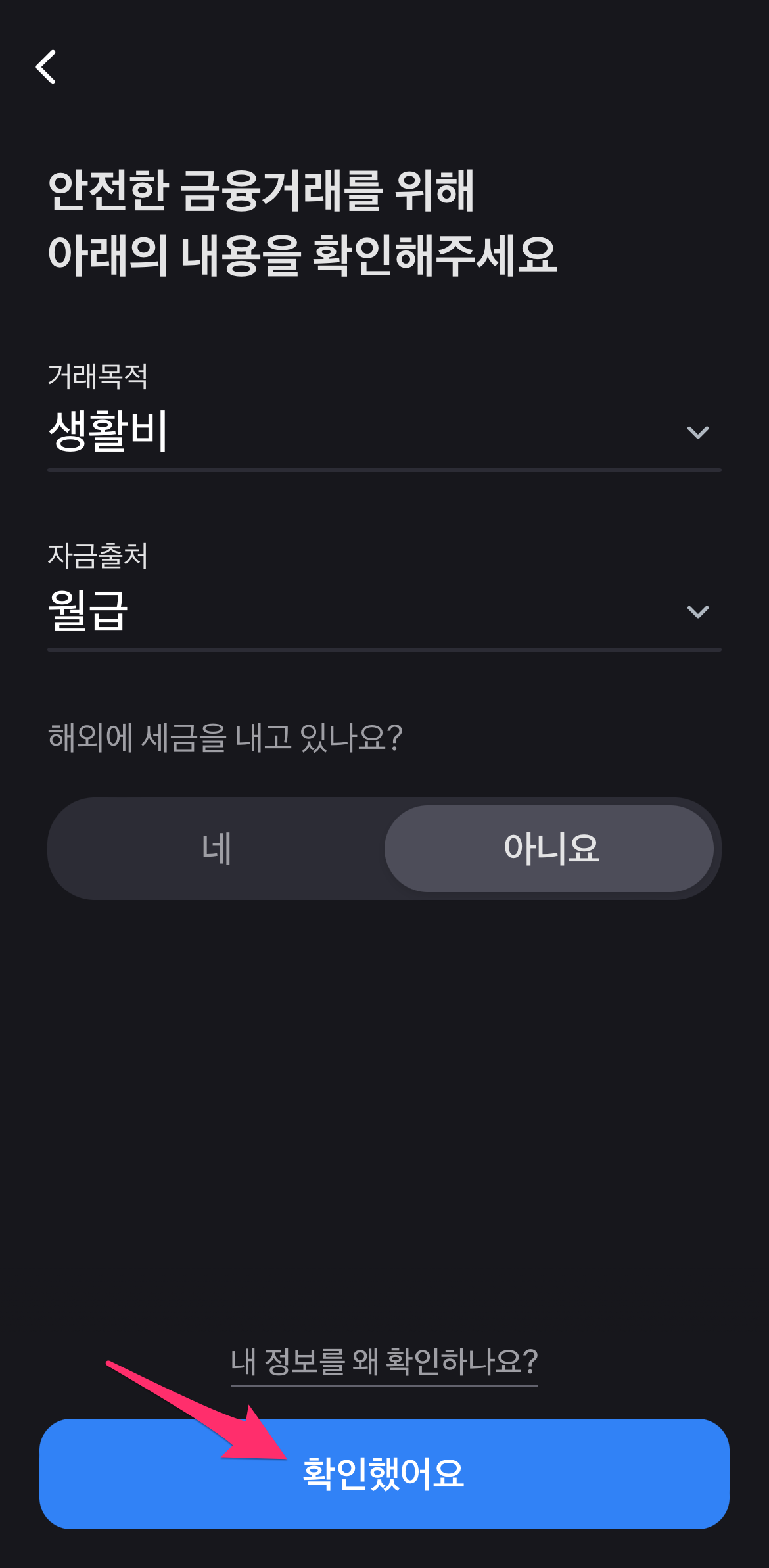 통장 인증에서 가지고 있는 통장으로 내 계좌로 1원 받기를 선택합니다.