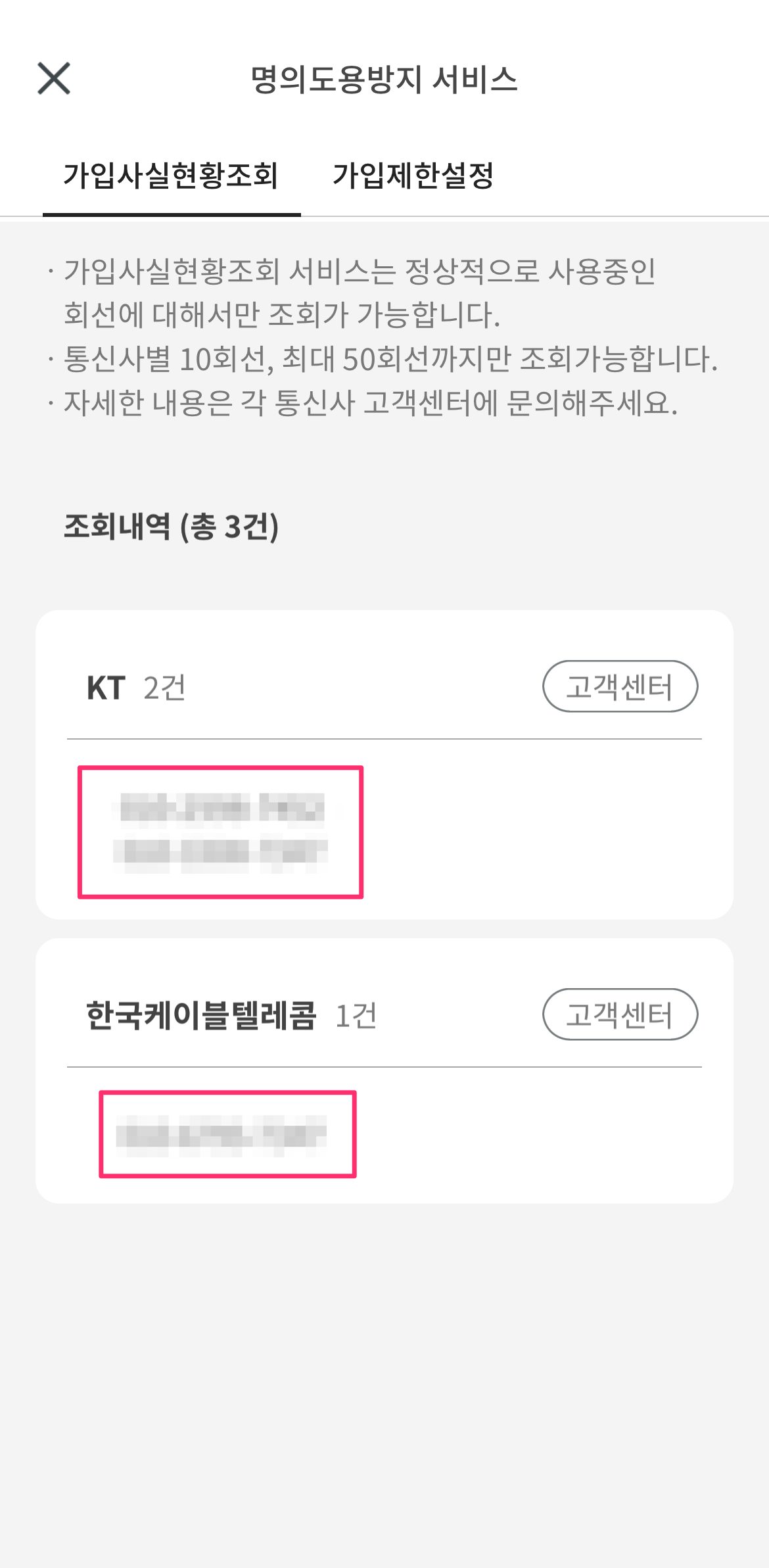 본인이 사용 중인 통신사 외에 신규 가입이나 명의변경을 사전에 차단할 수 있기에 안 좋은 일(?)을 방지할 수 있습니다.