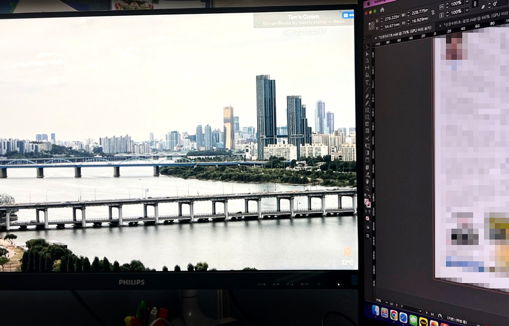 27인치 아이맥 프로라서 화면도 크고 화질도 좋은 것도 있지만 마치 창문 너머 한강이 보이는 거 같습니다.