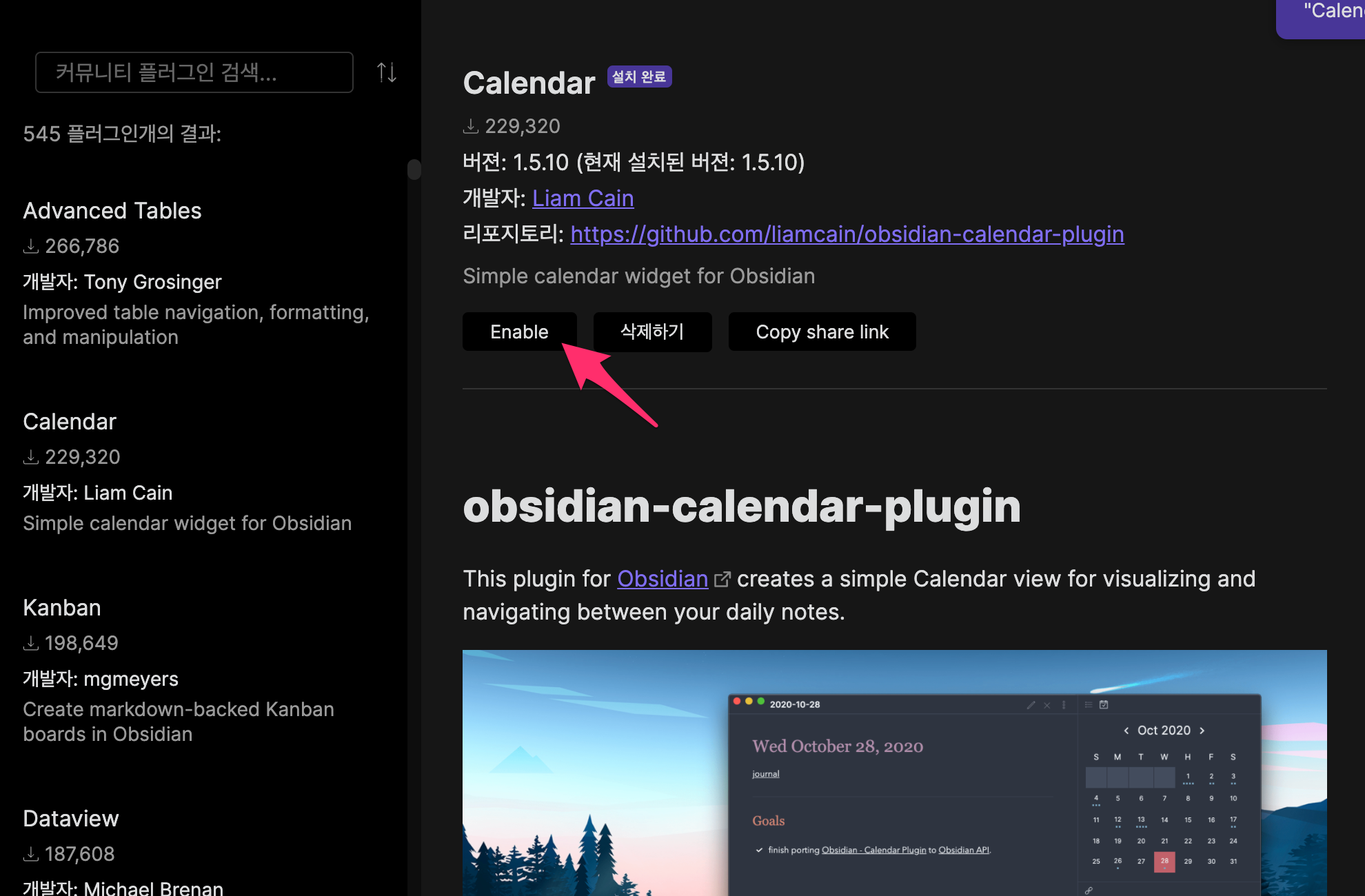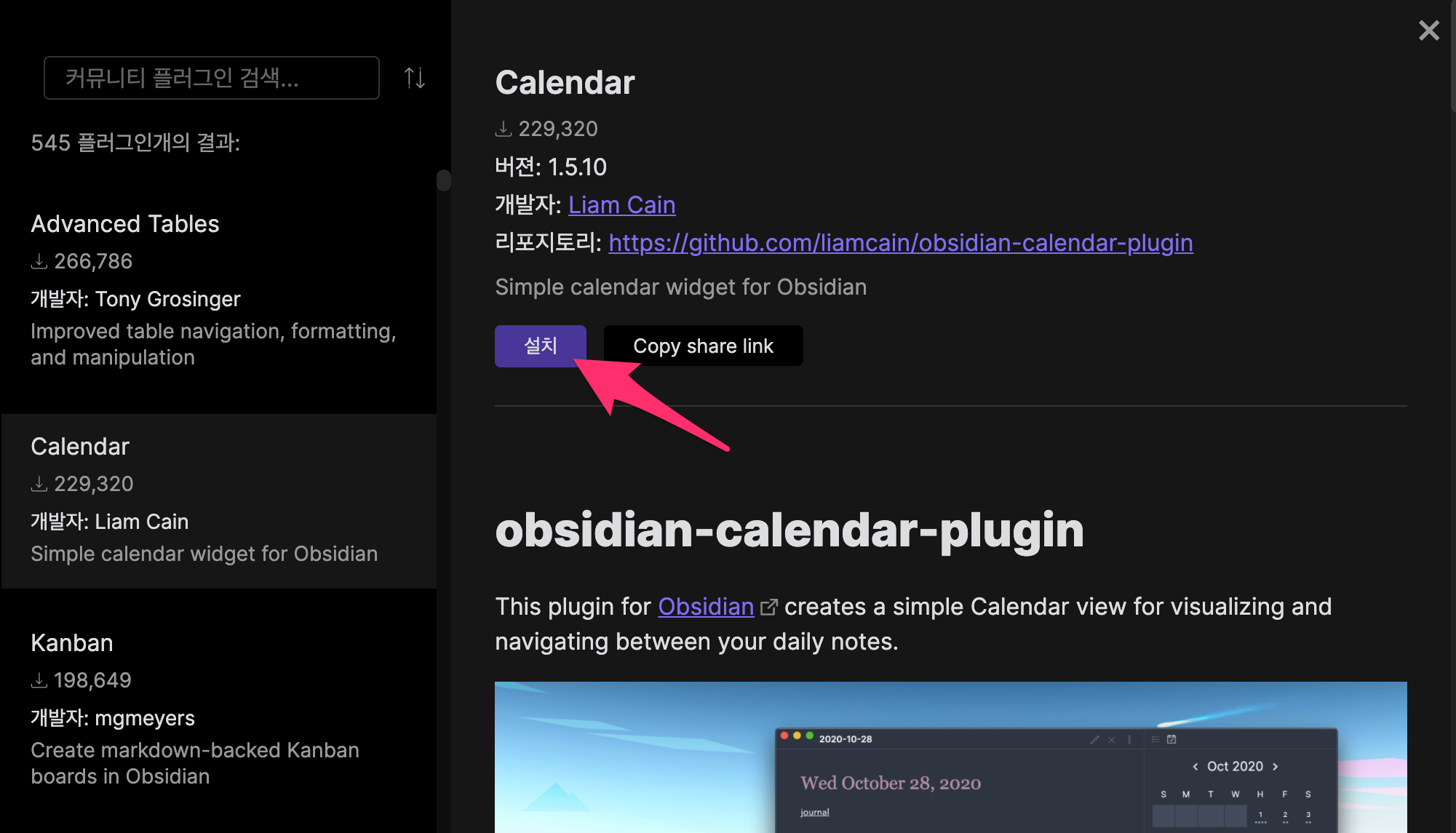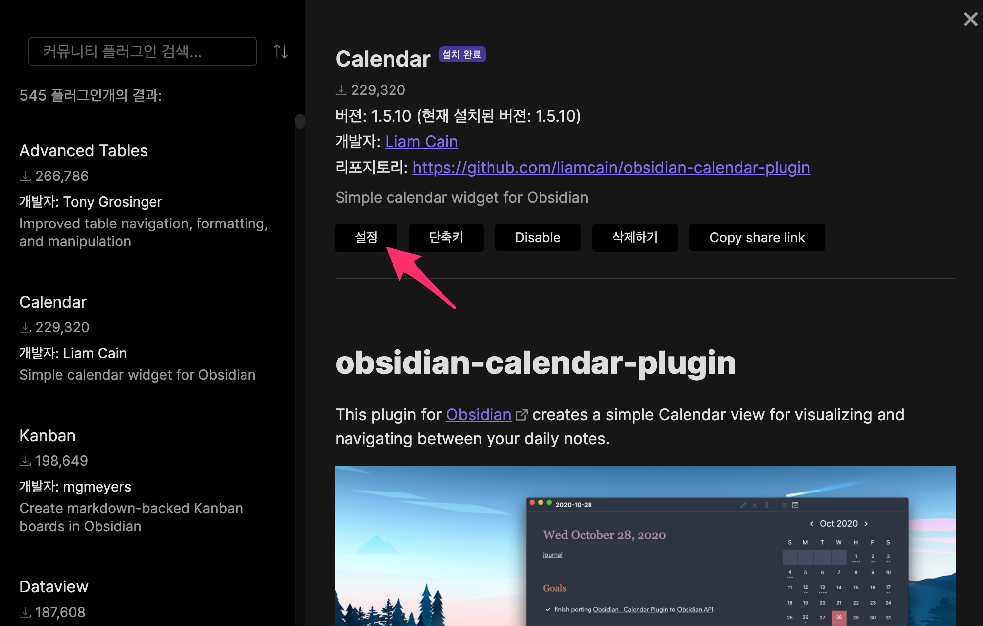 그 중에서 Calendar 플러그인을 설치해 보겠습니다.