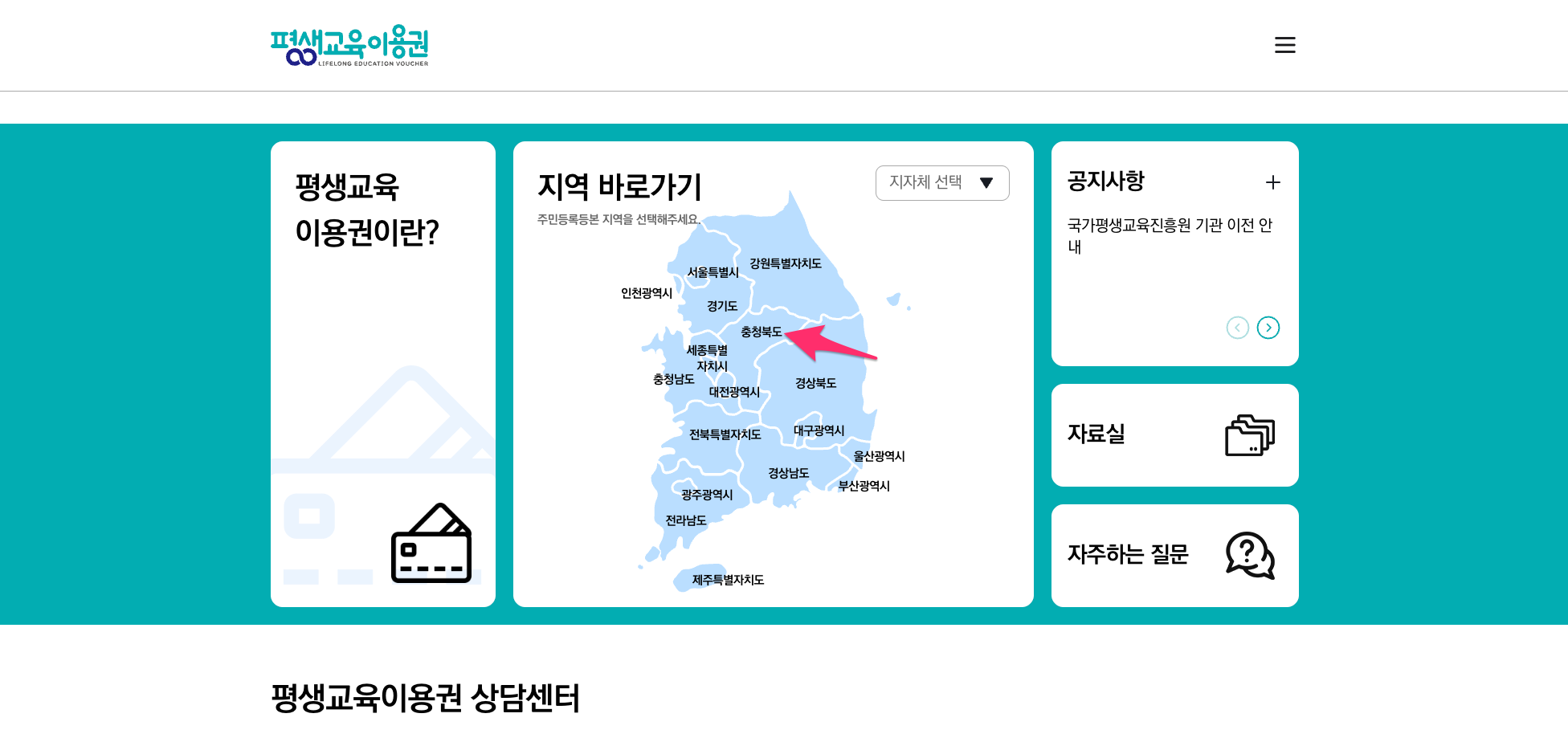 이번 신청은 충북이라서 충청북도를 선택합니다.