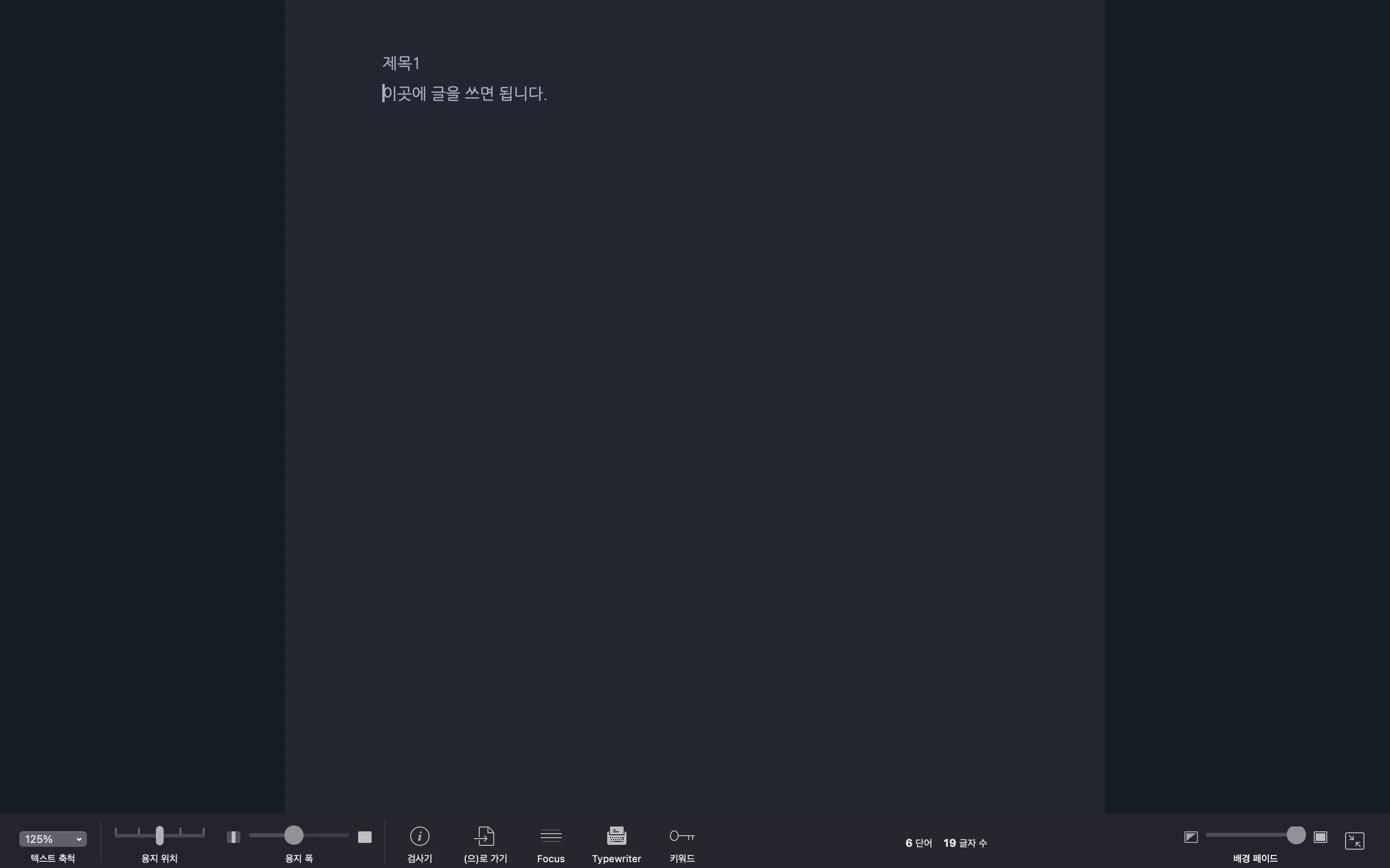 전체 화면 모드가 되면 문서 작성하는데 집중할 수 있습니다.