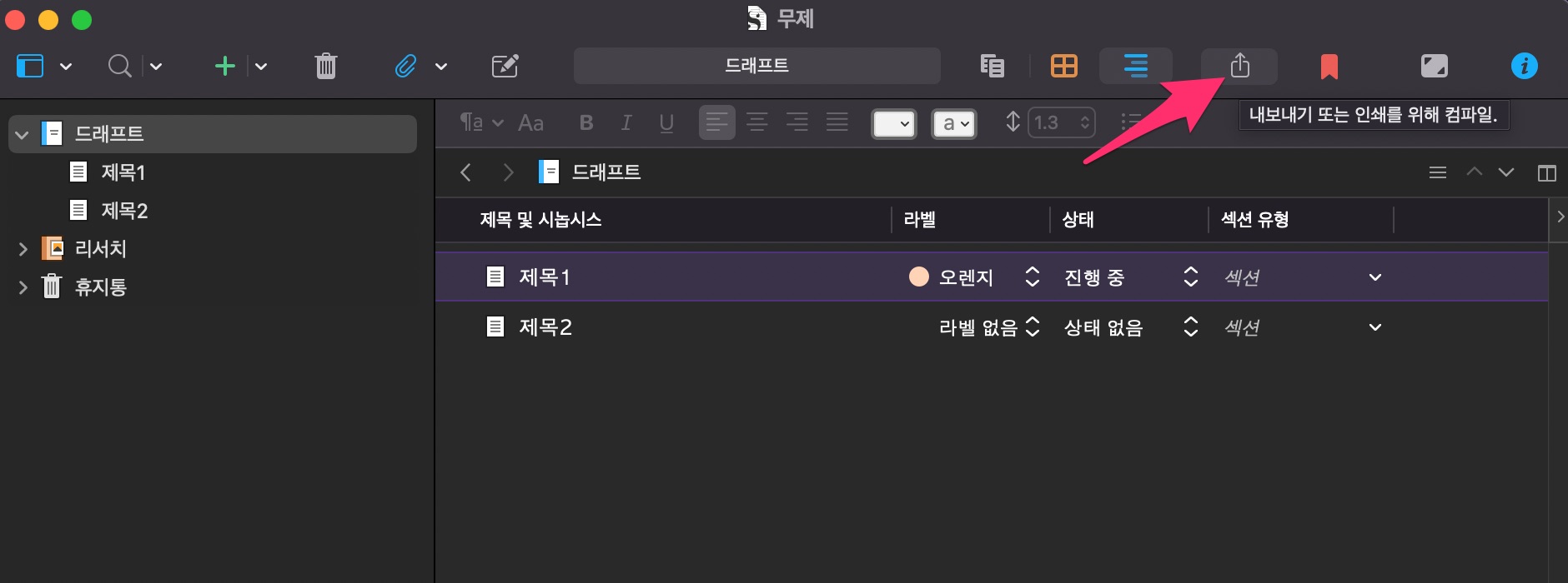 어느 정도 문서가 정리되면 내보내기 버튼을 선택합니다.