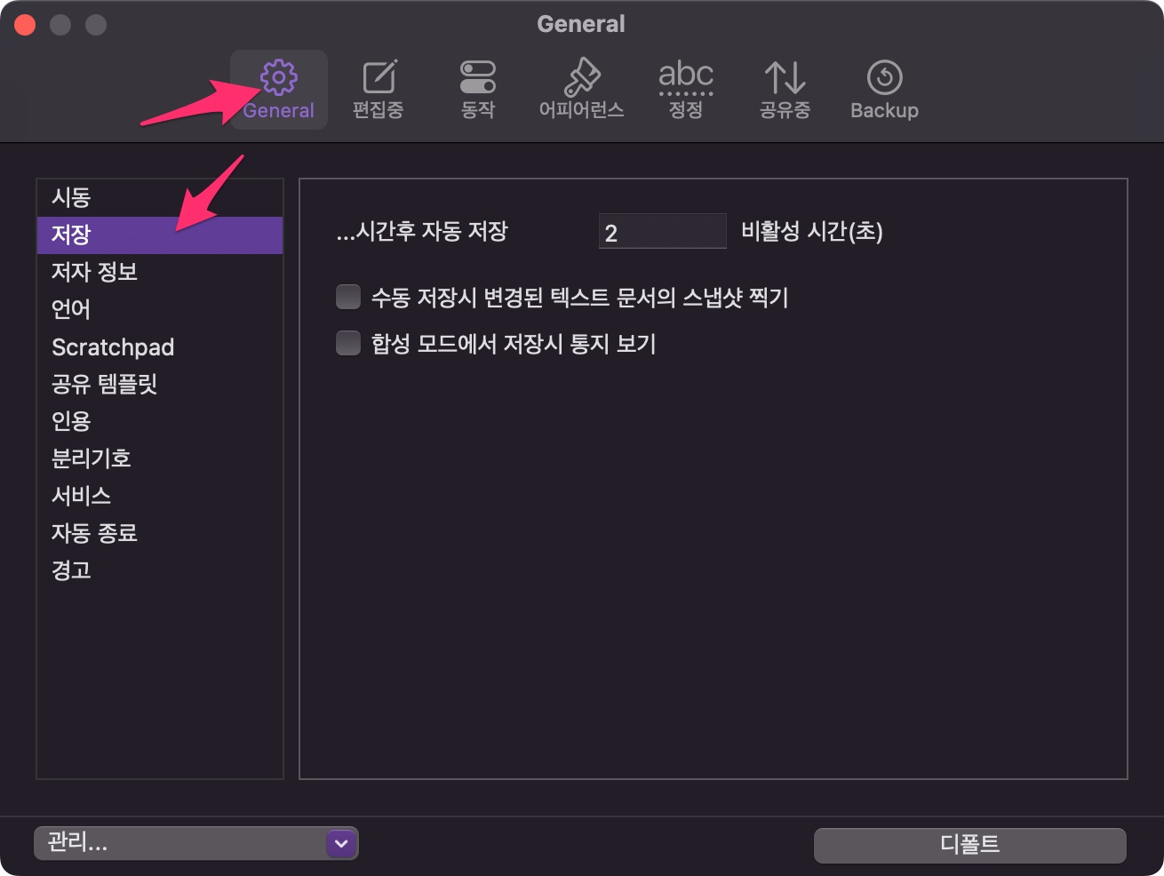 상단 General(일반)을 선택합니다.