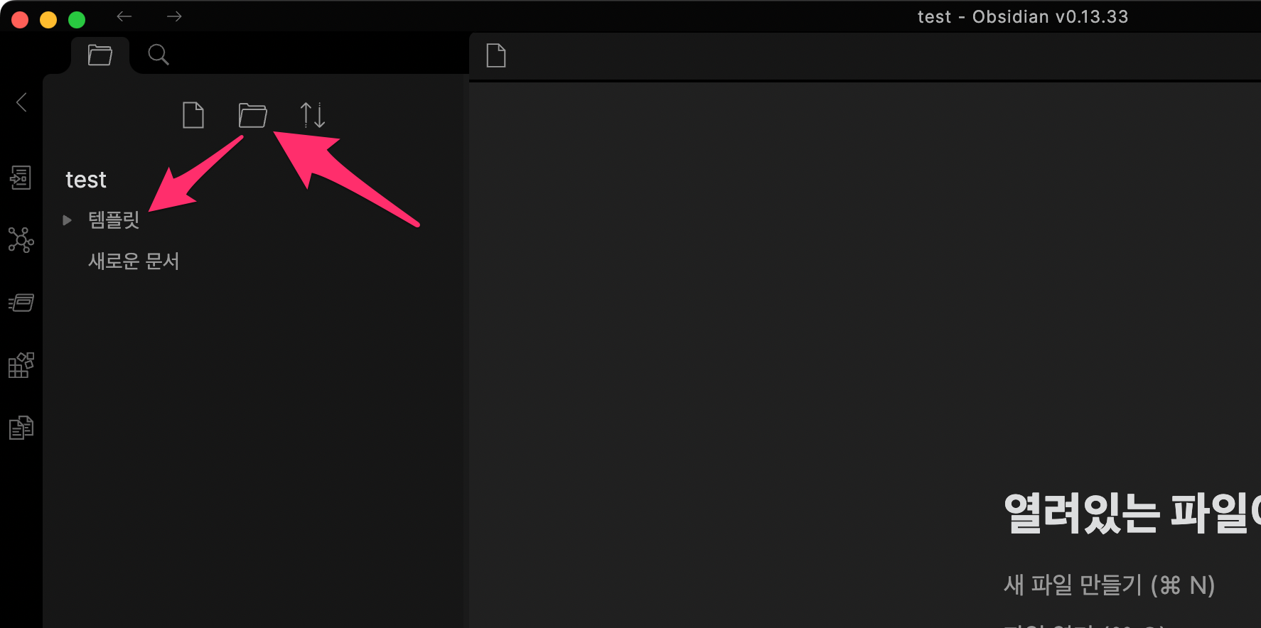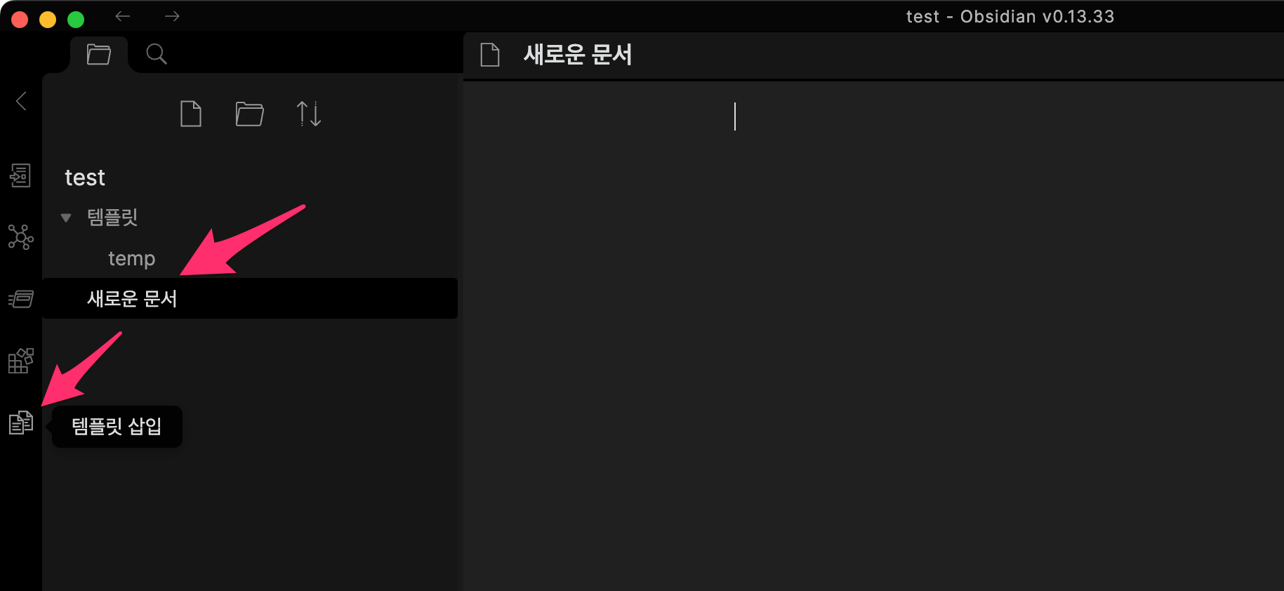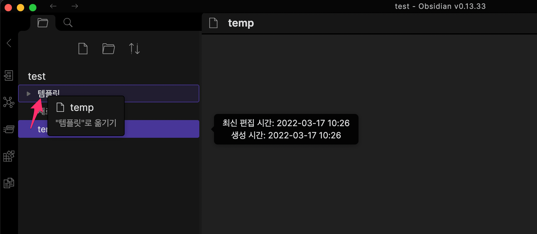 새로운 노트를 만들고 이름을 temp로 변경한 후에 템플릿 폴더 안으로 이동합니다.