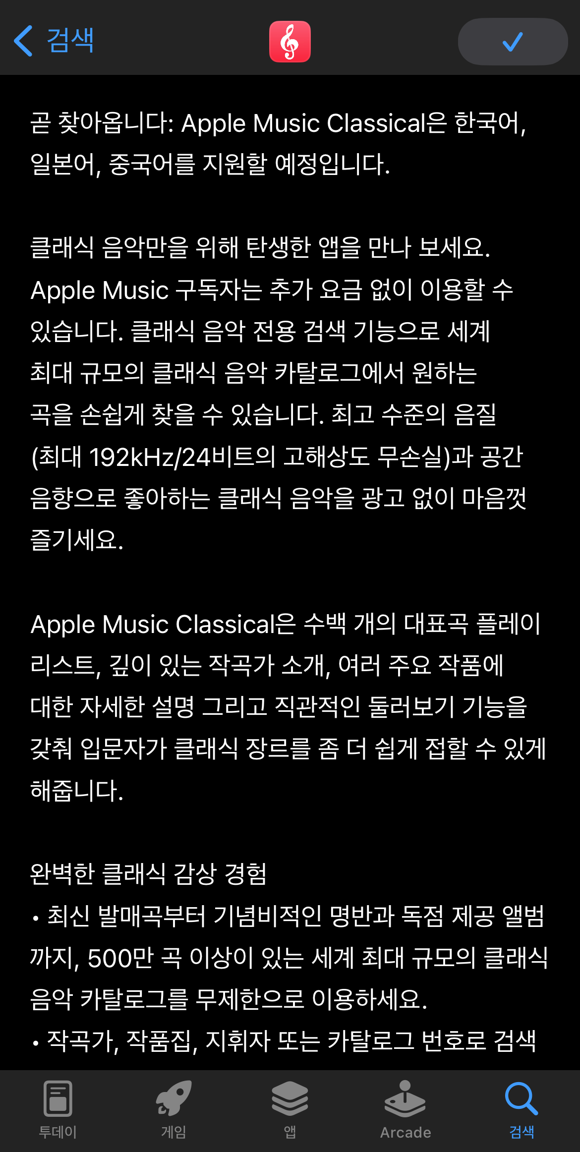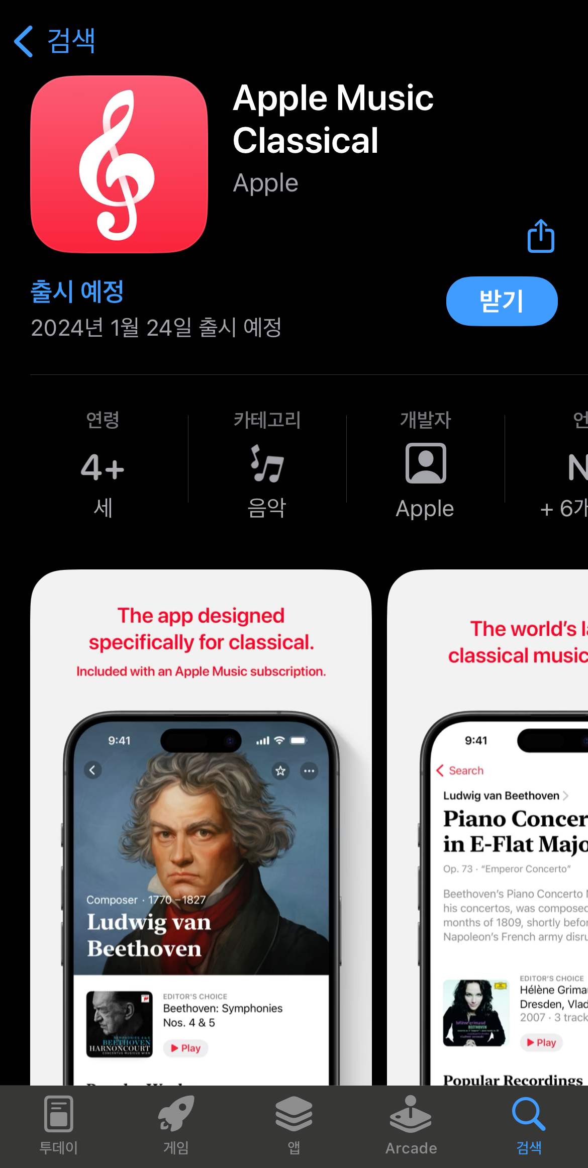 Apple Music Classical 한국 서비스가 1월 24일에 시작한다고 하네요.