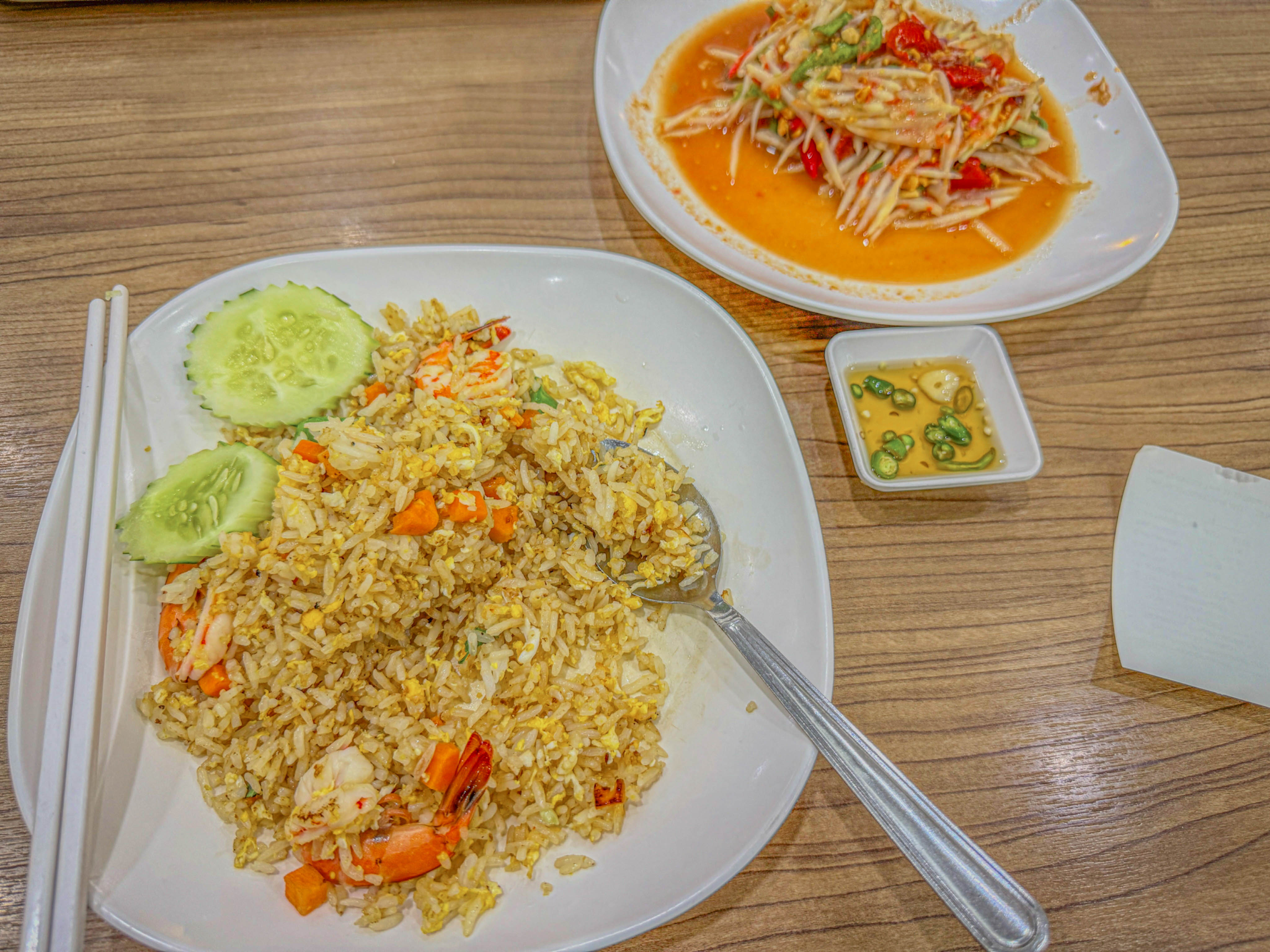 팟타이, 쏨땀, 카오팟 등등 온갖 태국 음식들이 다 있고 가격도 진짜 저렴해요. 맛도 웬만한 식당 못지않게 괜찮았습니다.