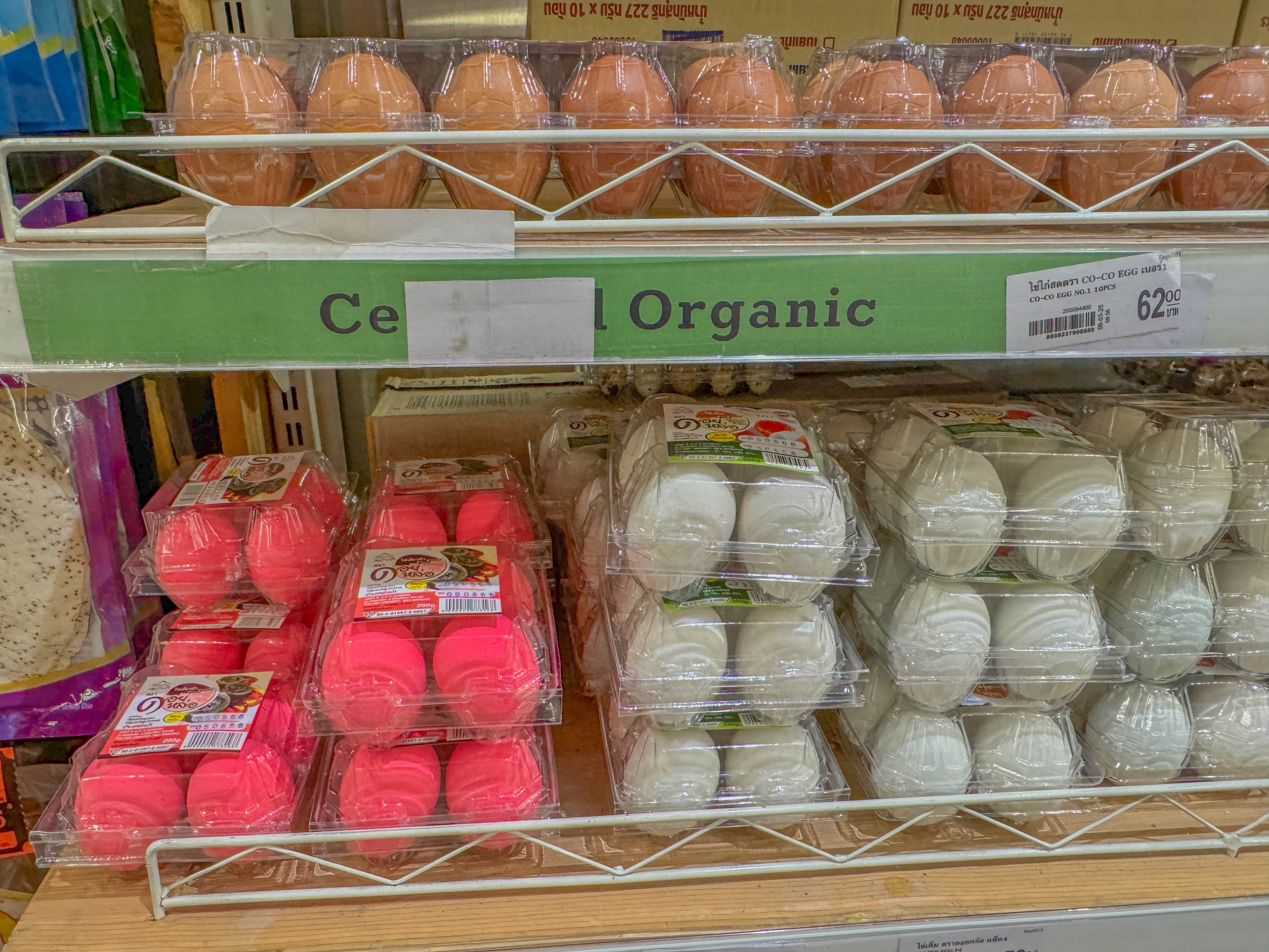 계란 코너에서 본 이 분홍색 계란들!