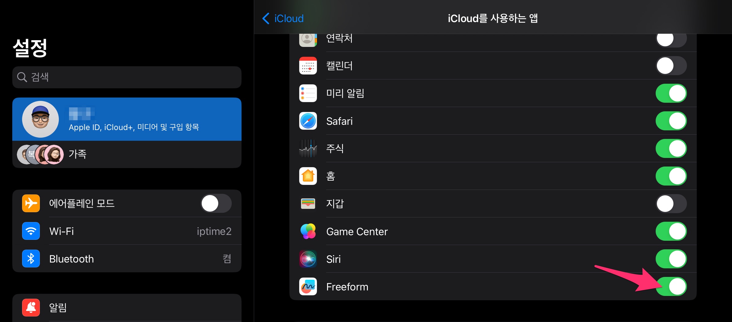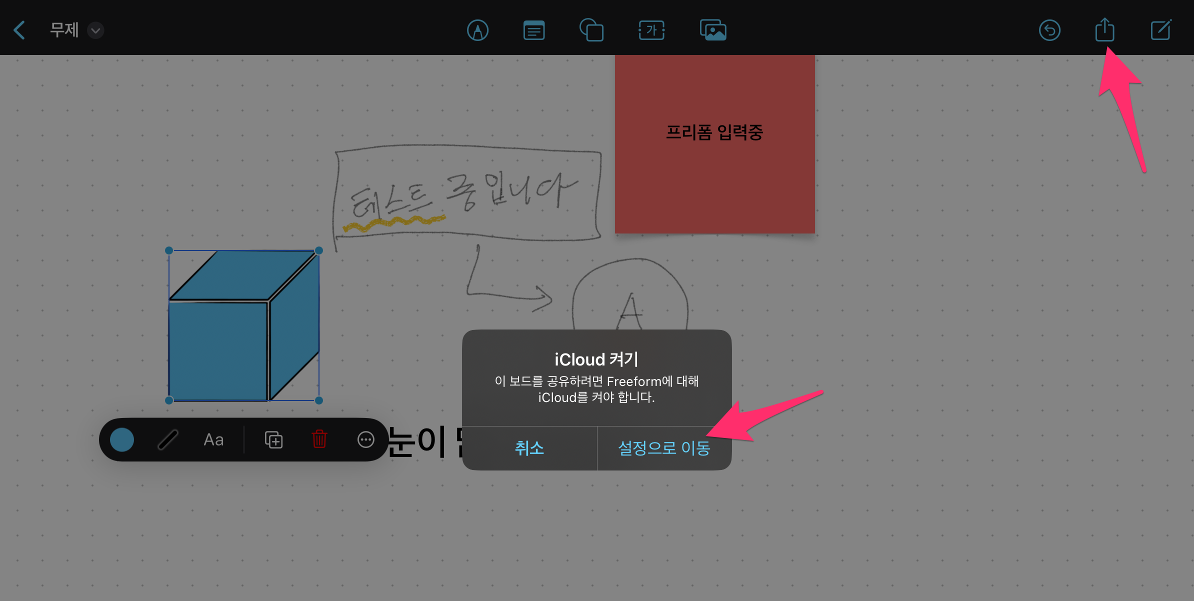 공유하기가 가능하려면 설정에서 iCloud를 켜야 합니다.