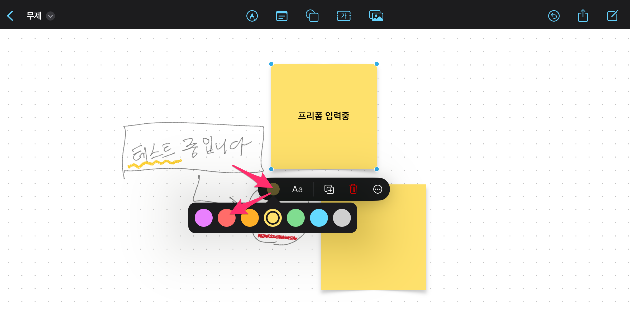 스티커 메모를 선택하면 포스트잇 같은 스티커 메모가 생성됩니다.
