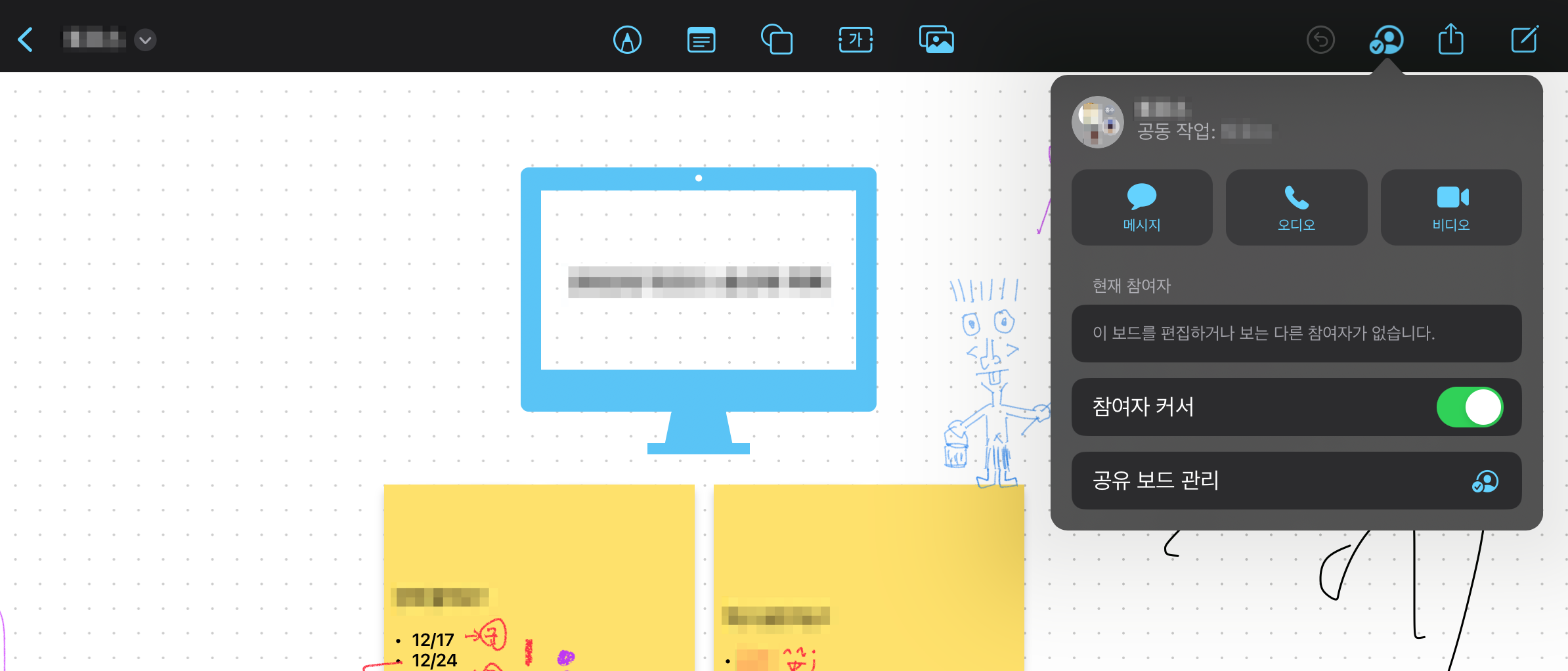 여러 명이 접속하면 오른쪽 상단에 공동 작업 아이콘이 생성됩니다.