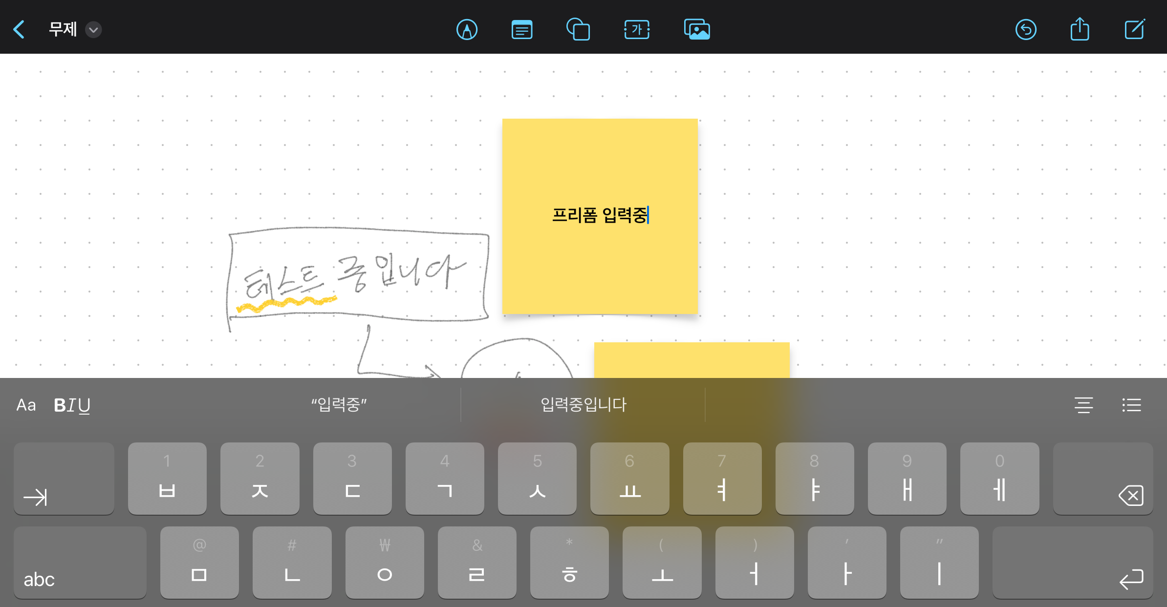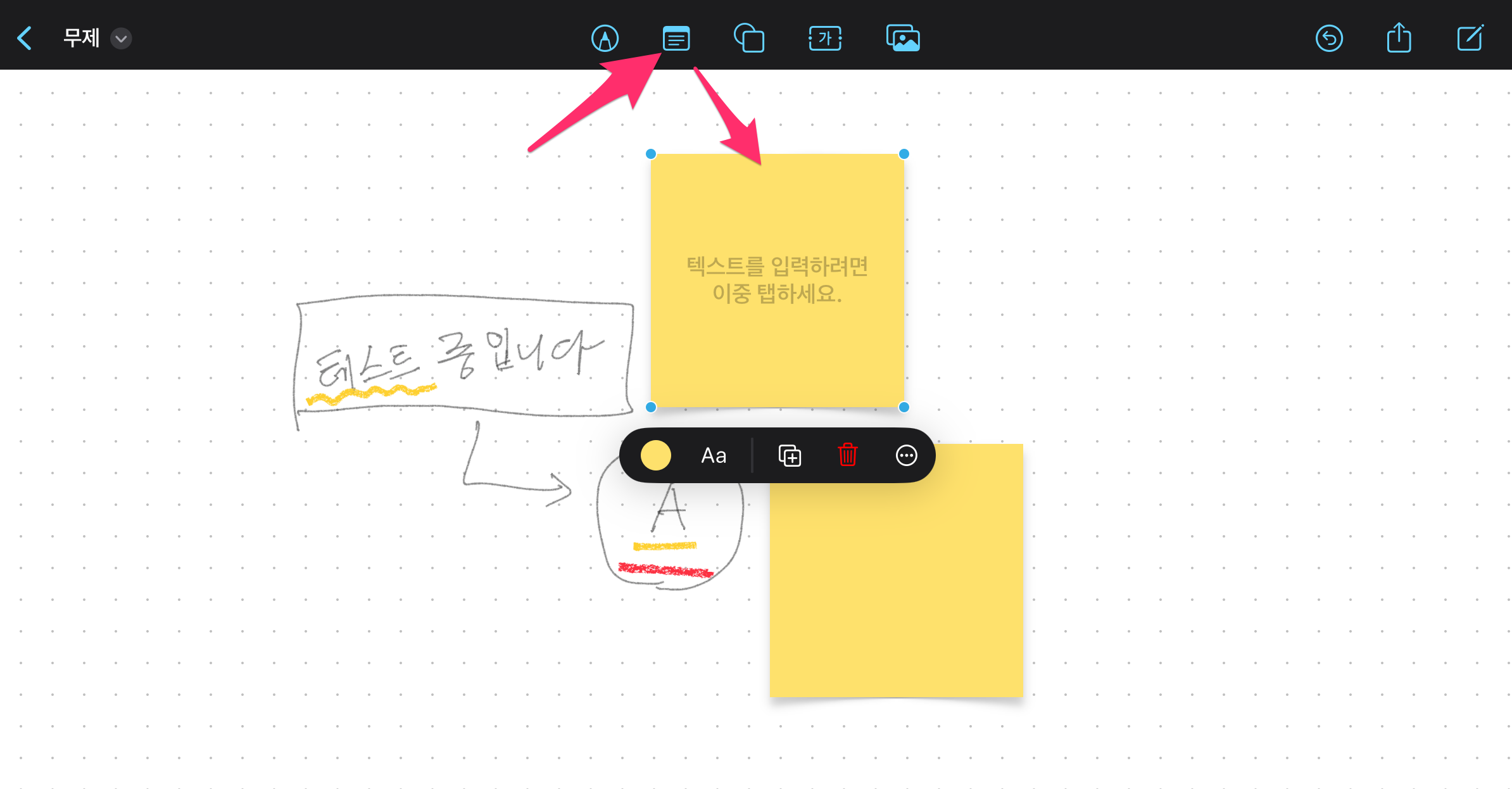 스티커 메모를 이중 탭을 하여 타이핑합니다.