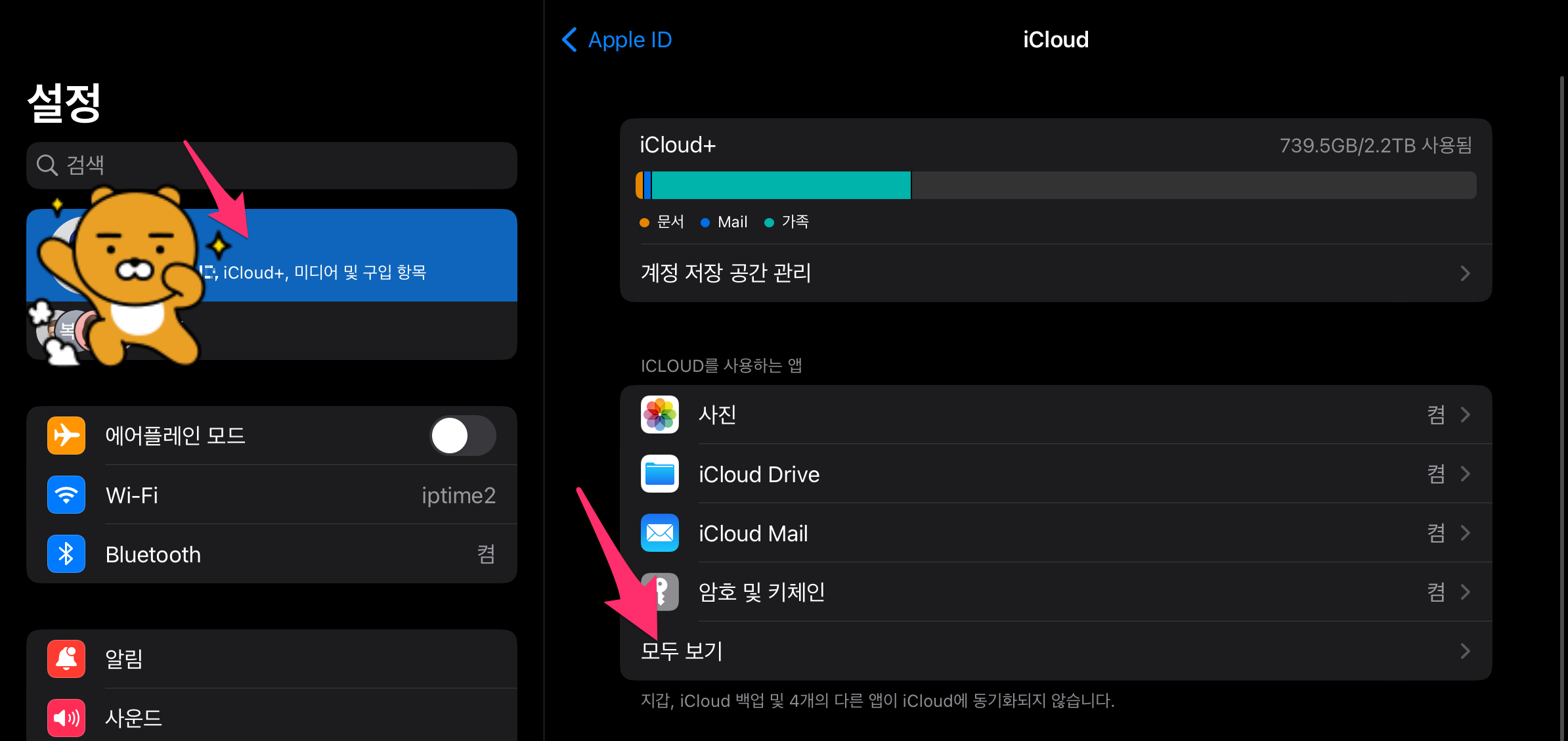 iPad 설정에서 애플 ID로 들어가서 iCloud를 사용하는 앱에서 모두 보기를 선택합니다.
