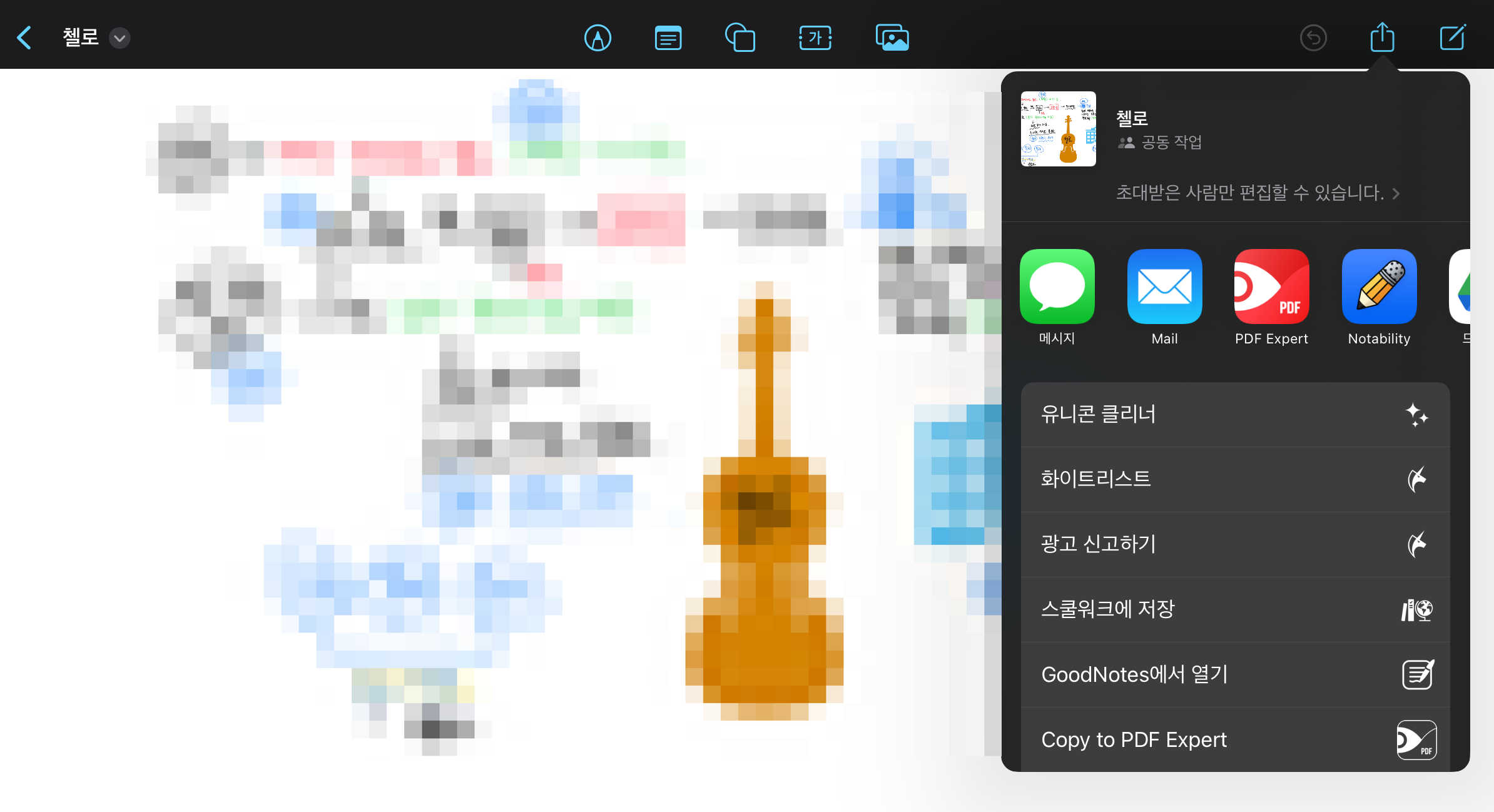 옵션 창 하단에 공유 보드 관리를 선택하면 공유된 아이디를 확인할 수 있습니다.