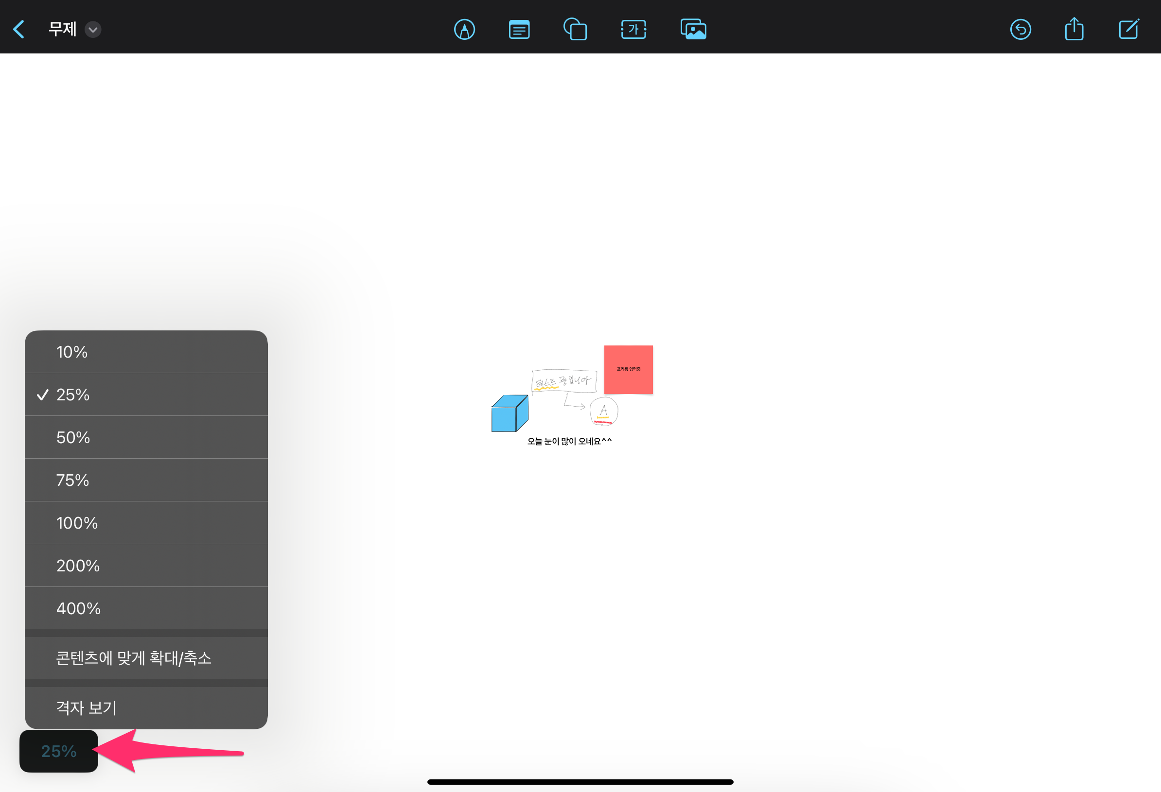 왼쪽 하단에 화면 배율과 격자 보기를 설정합니다.