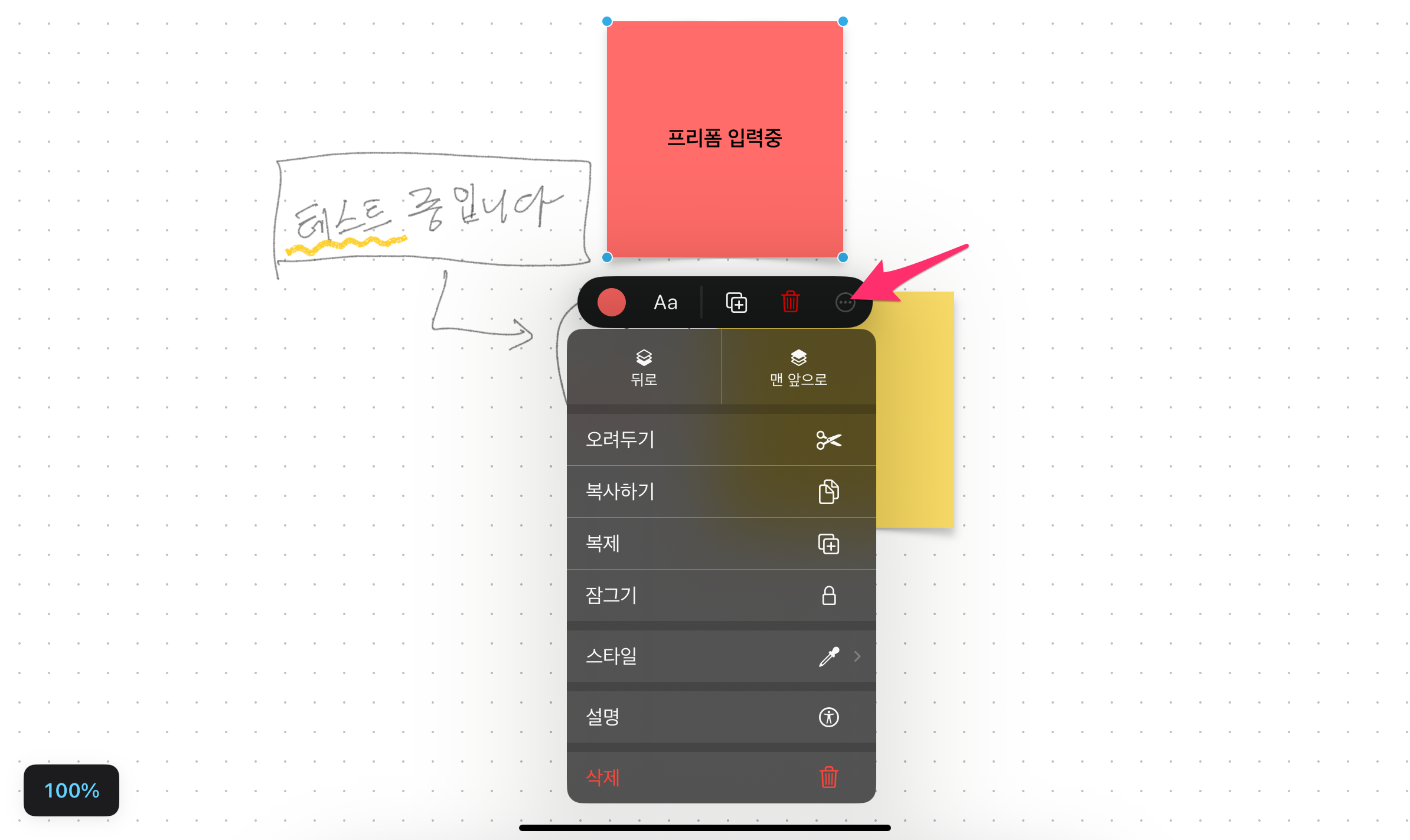 스티커 메모를 이중 탭을 하여 타이핑합니다.