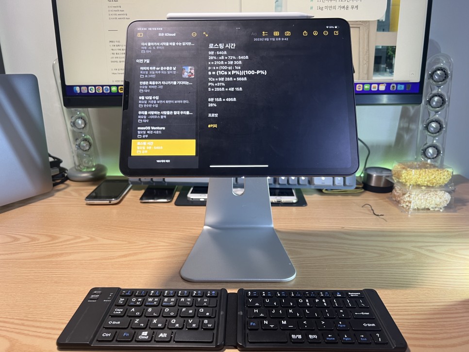 아이패드를 안정적으로 세로로 보니 PDF 보기 좋네요^^;