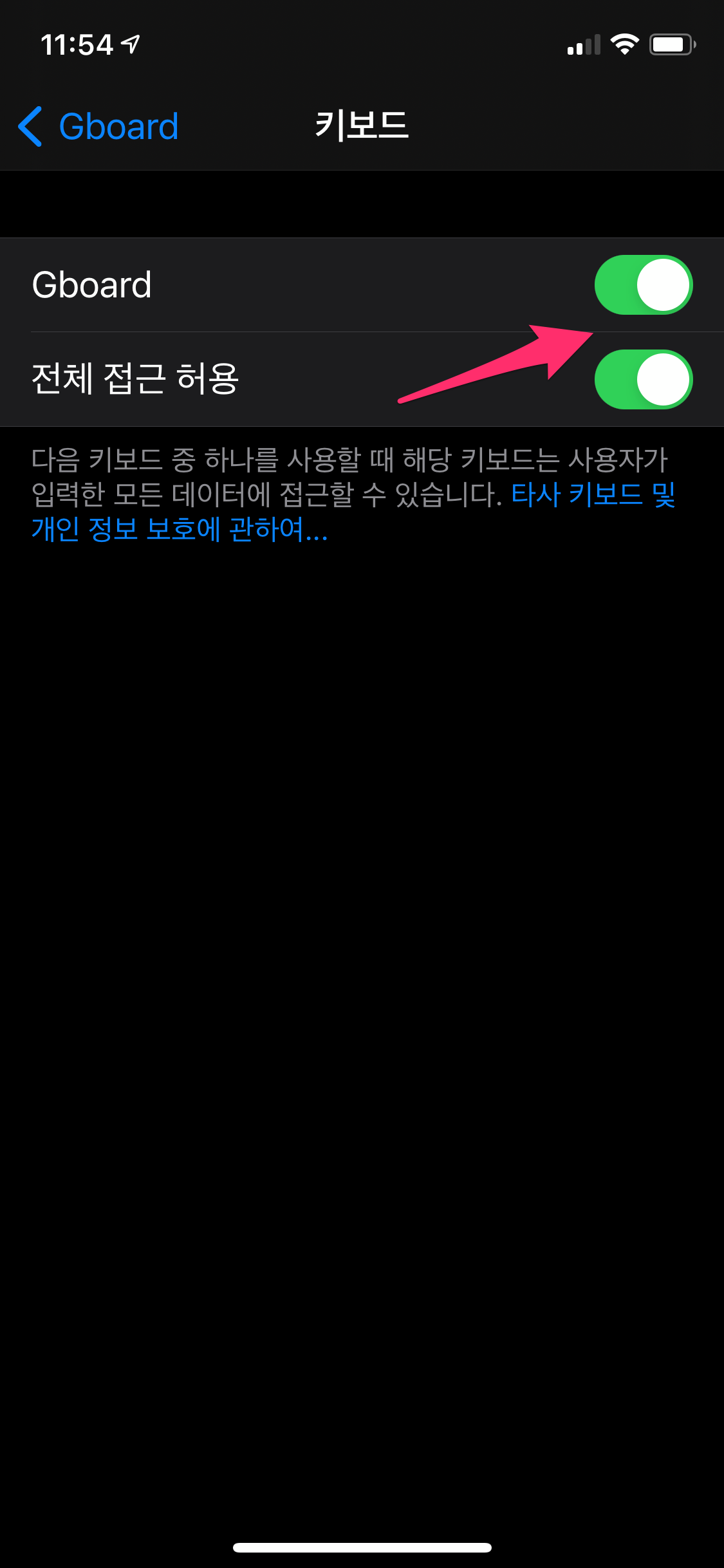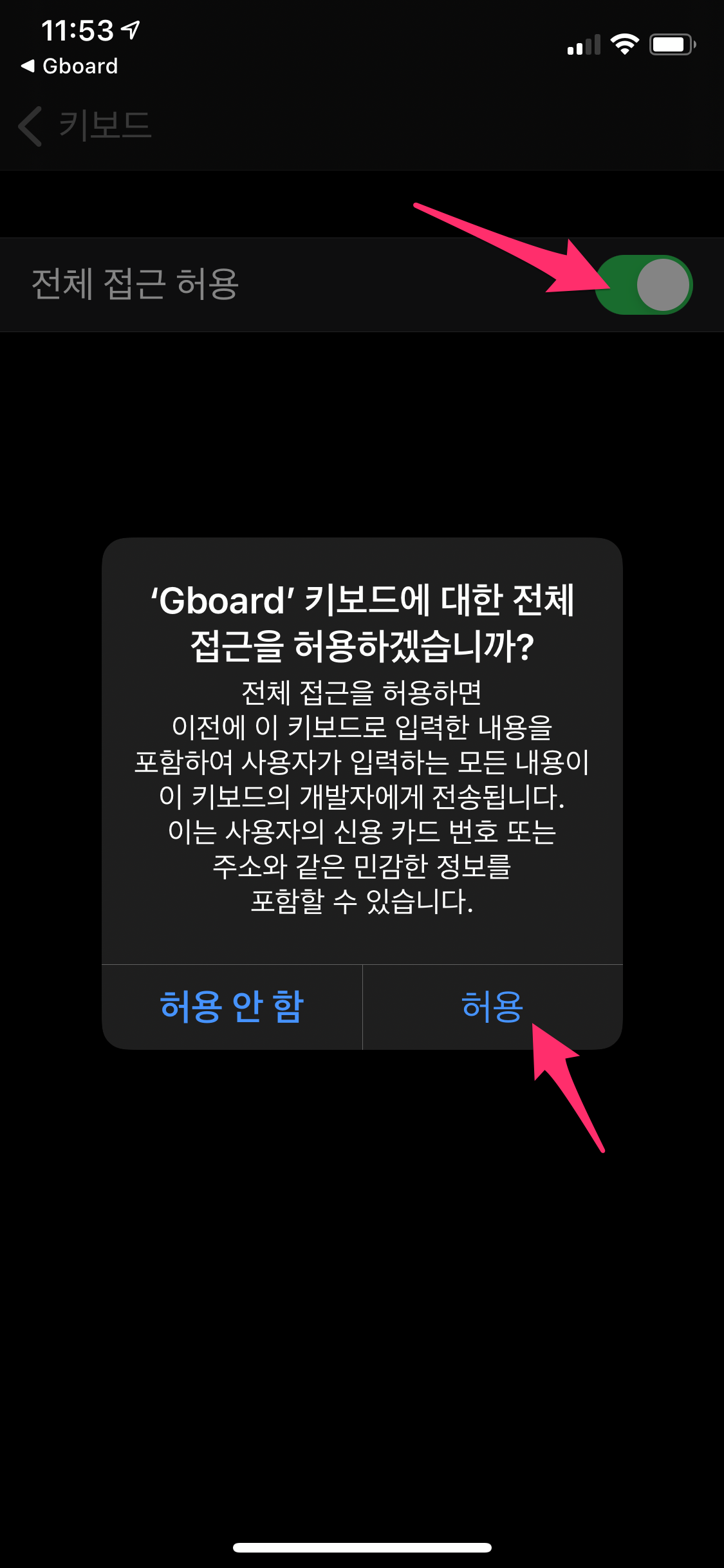 추가된 Gboard를 선택하면 전체 접근 허용을 확인할 수 있습니다.