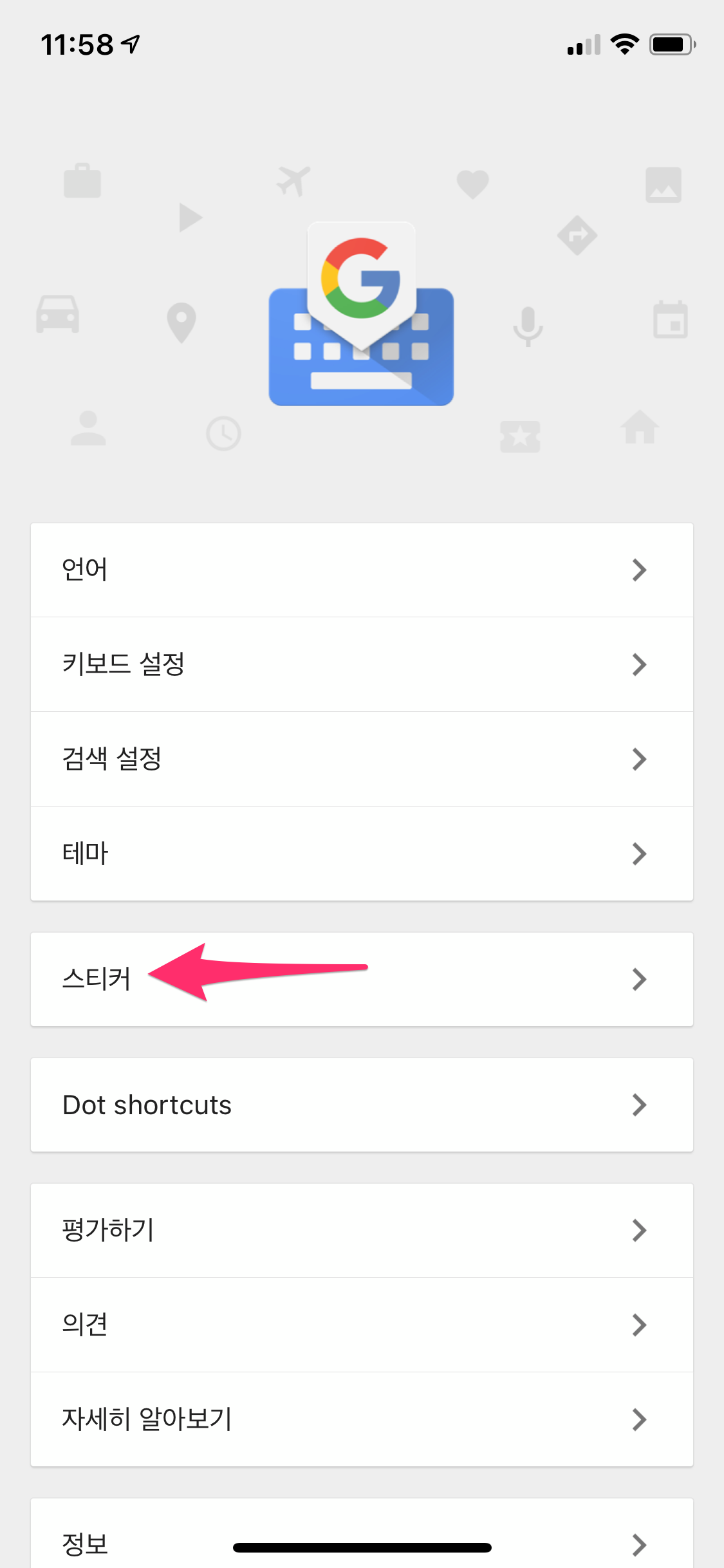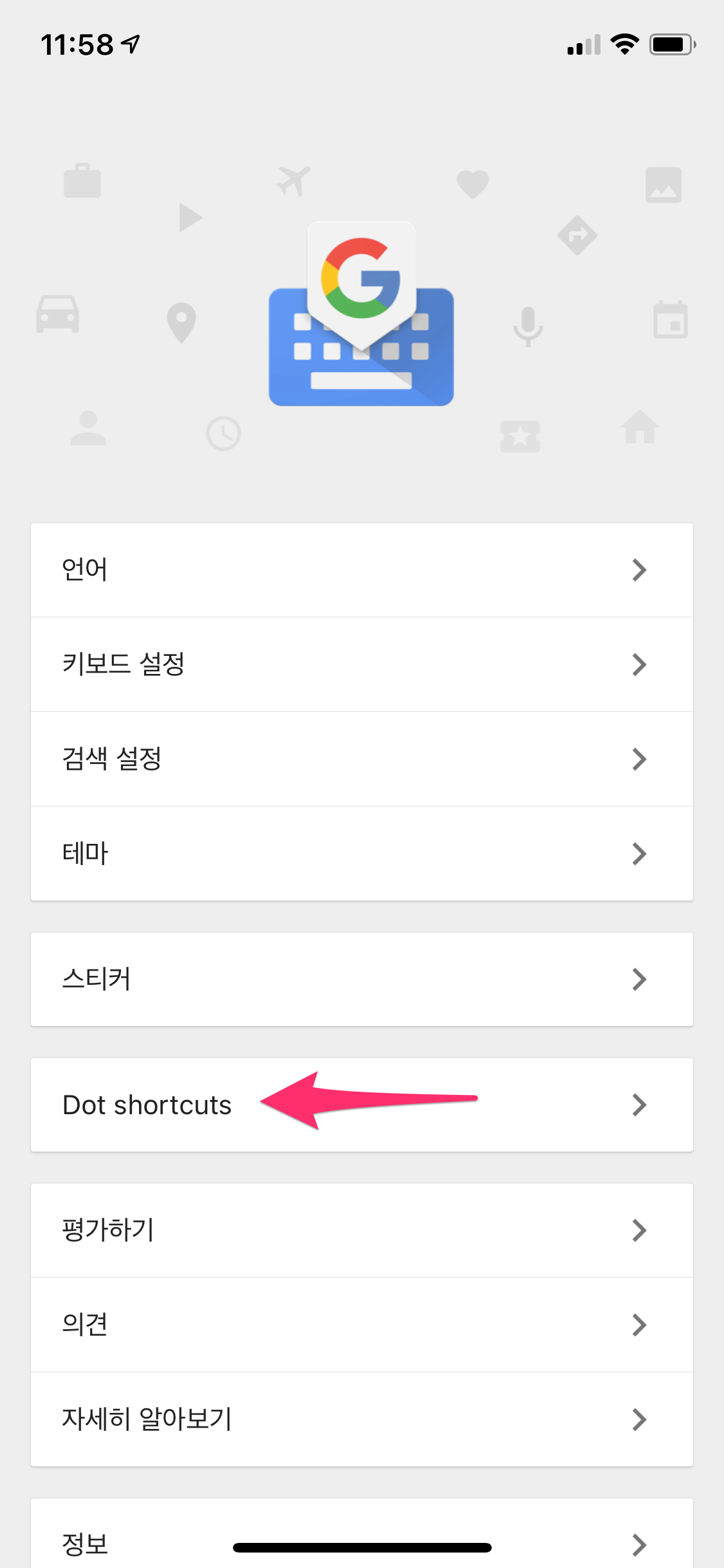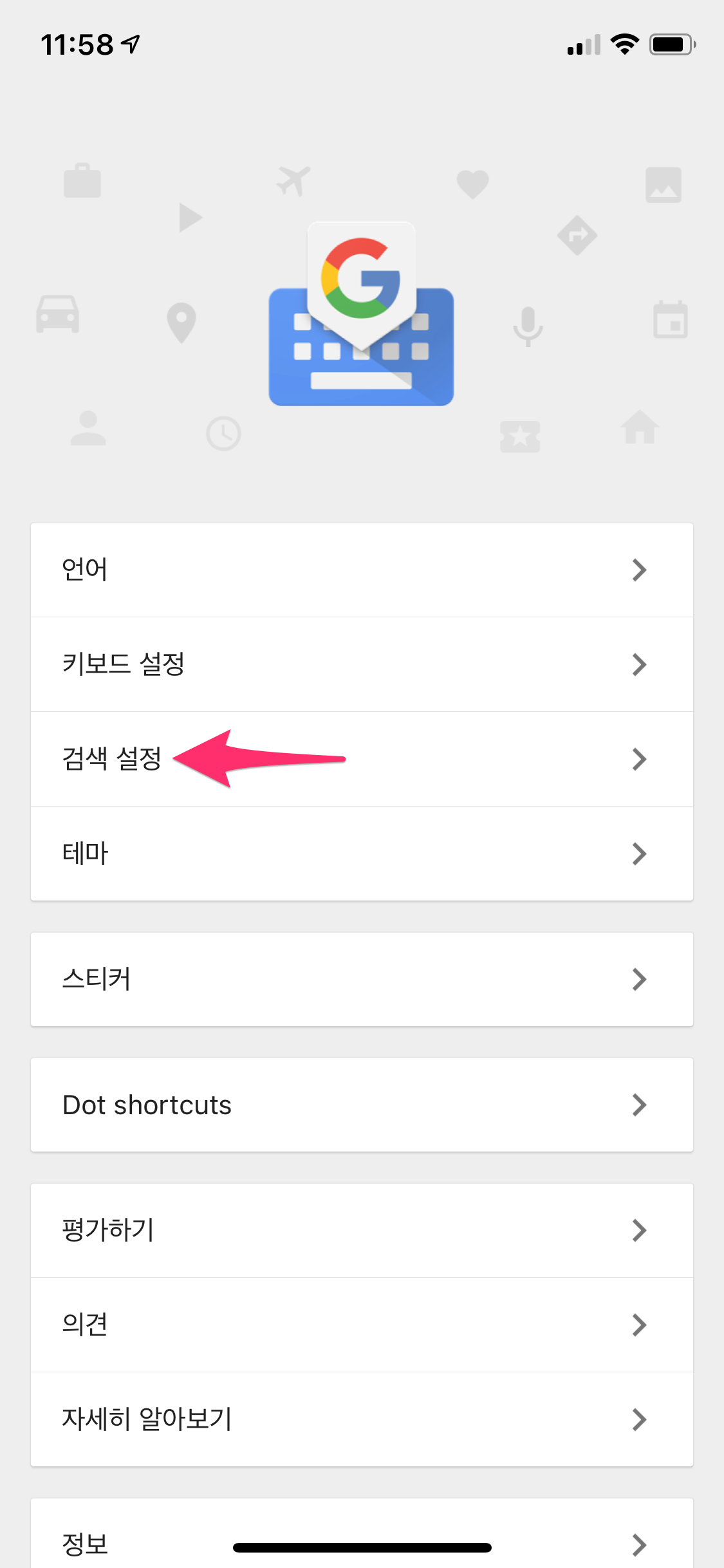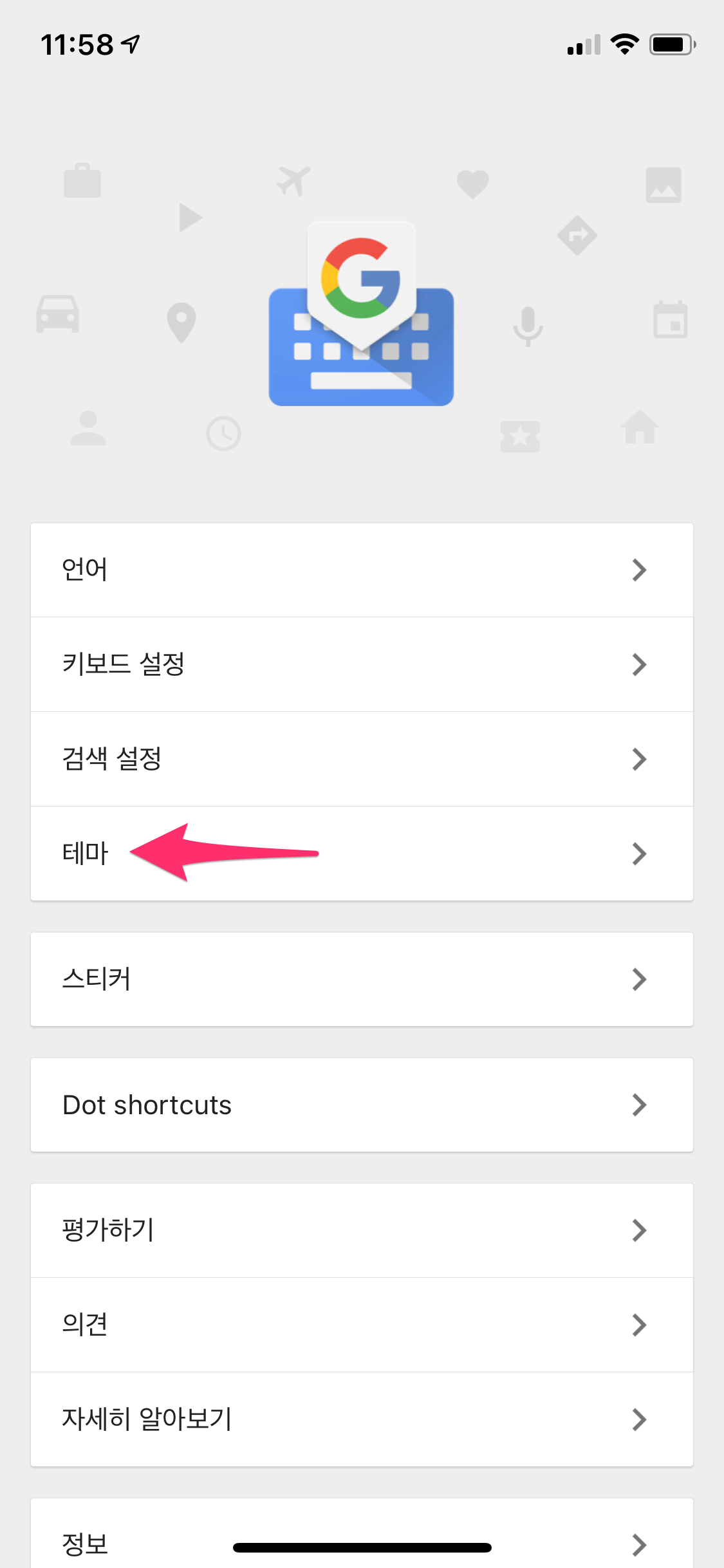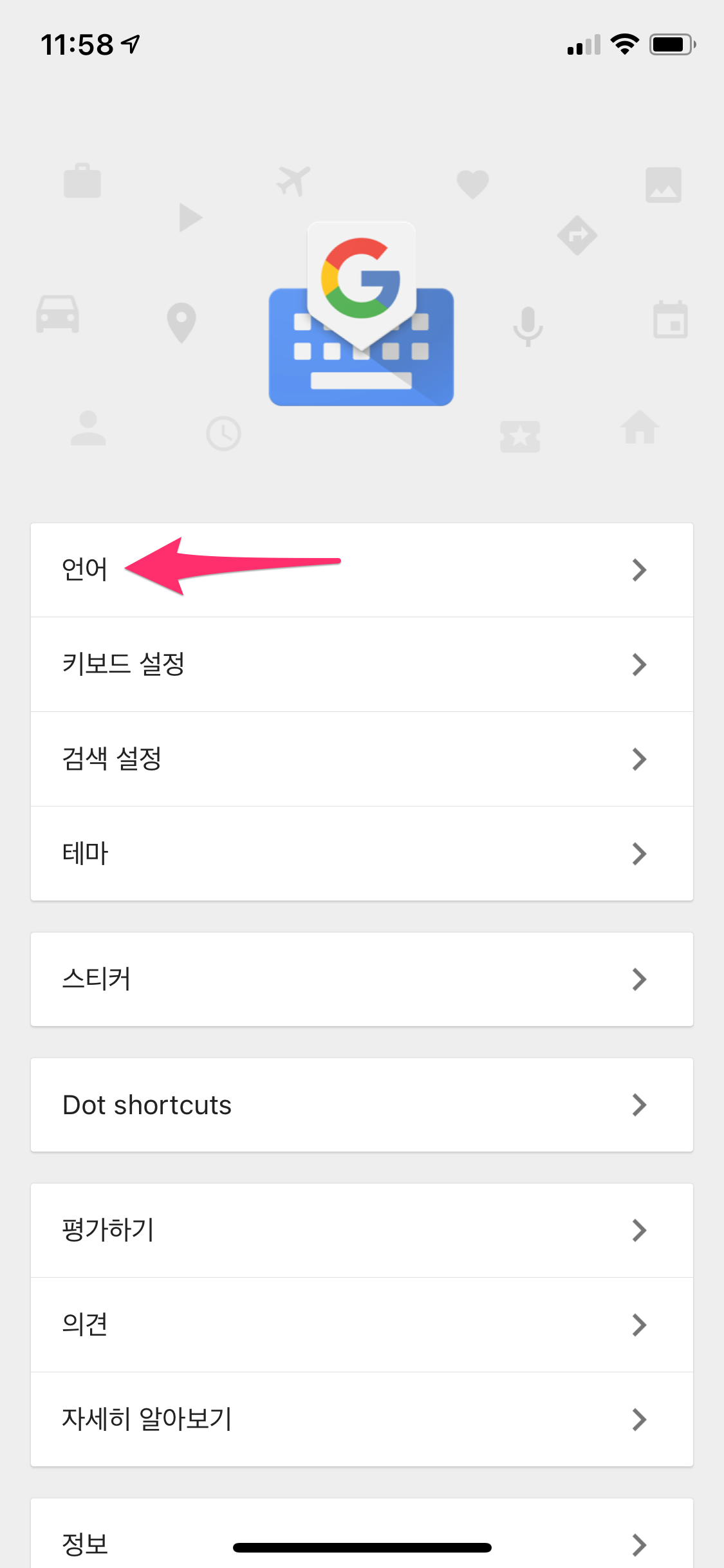 Gboard 앱을 선택하면 다양한 메뉴가 나옵니다.