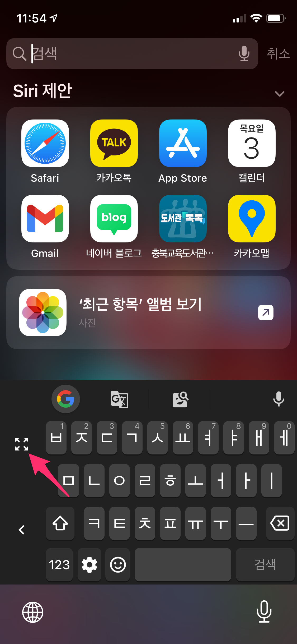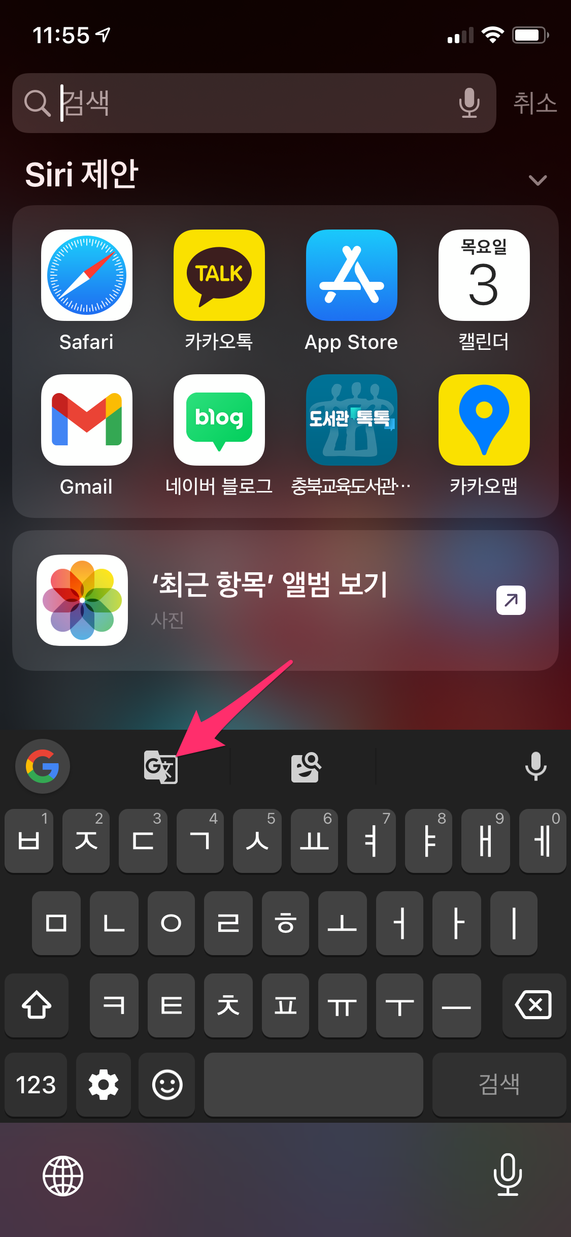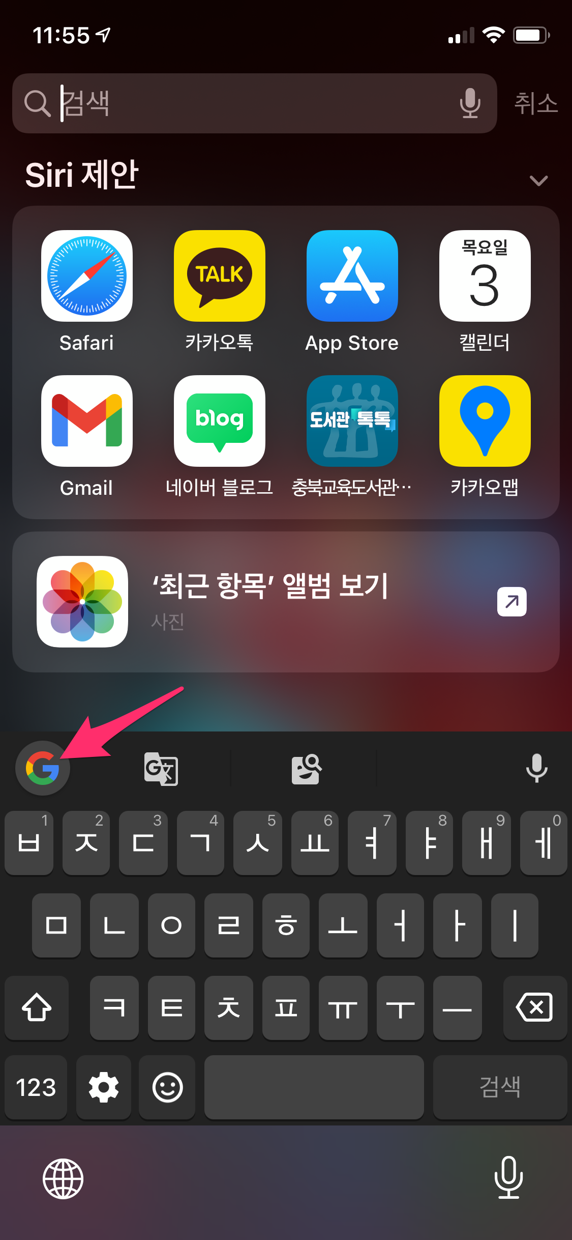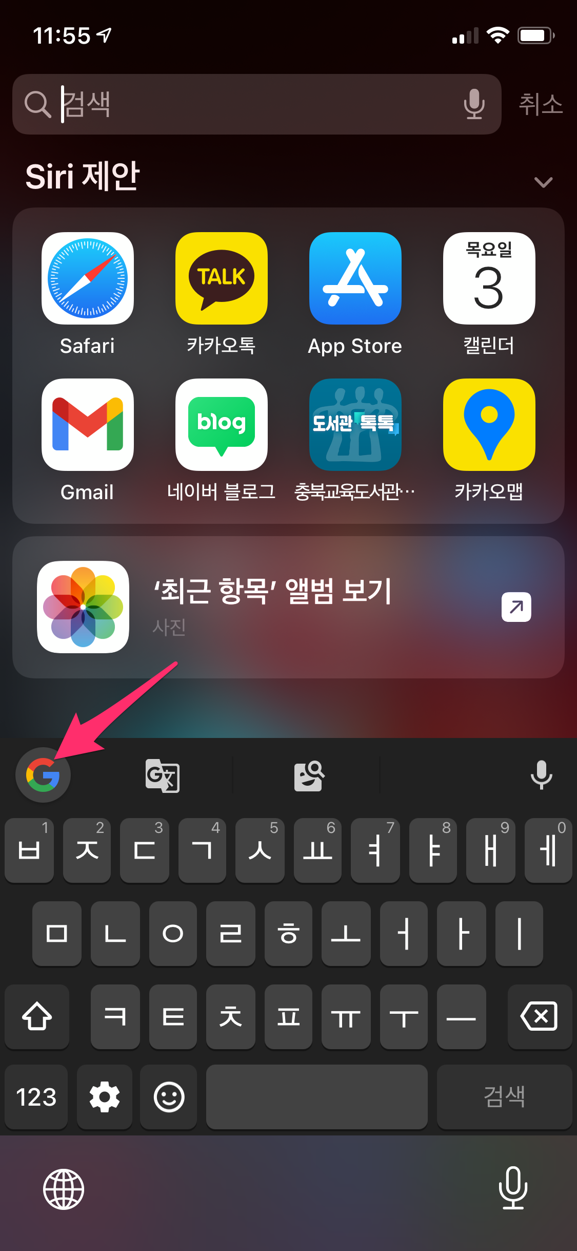상단에 구글 아이콘(G)을 누르면 구글 검색이 가능합니다.