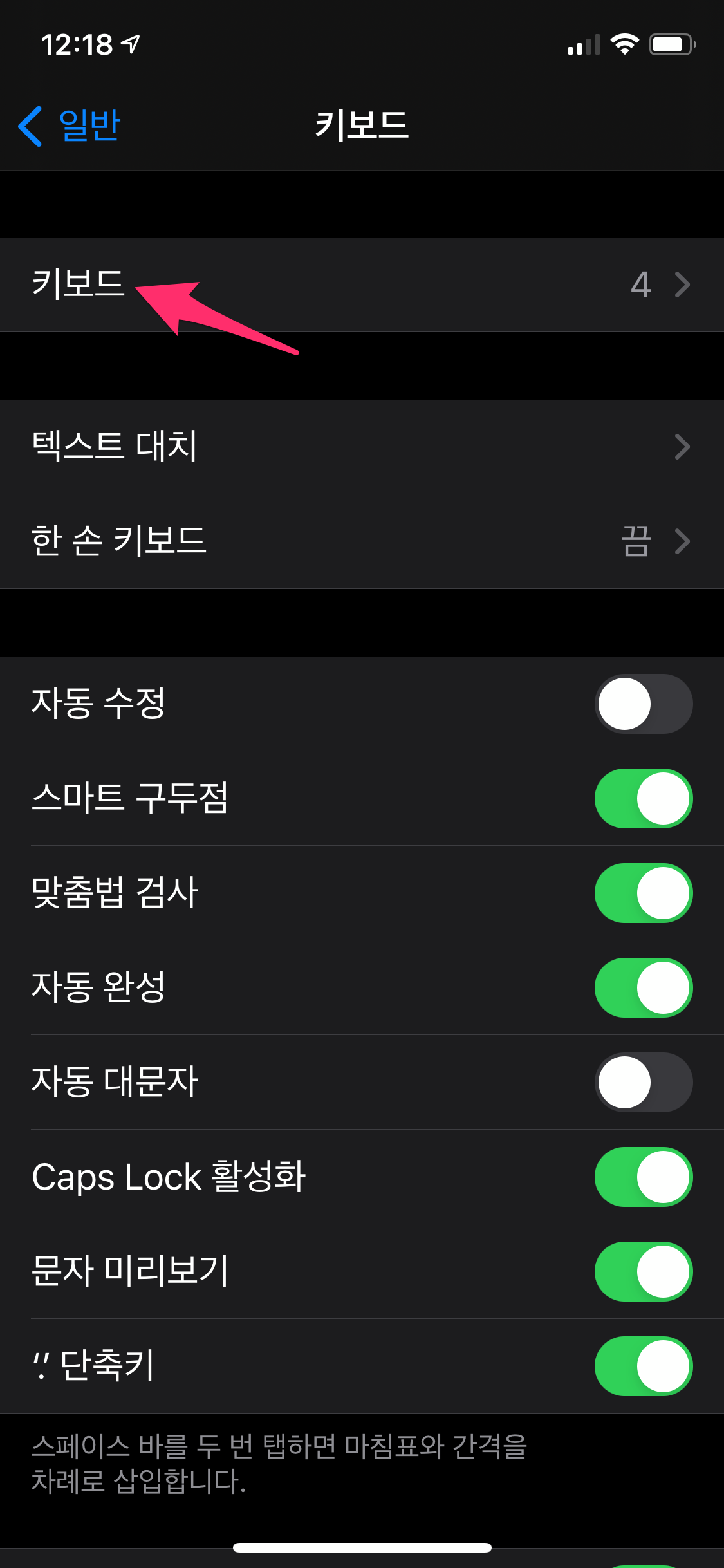 혹시나 아이폰에서 따로 설정하시려면 설정 - 일반 - 키보드로 들어갑니다.