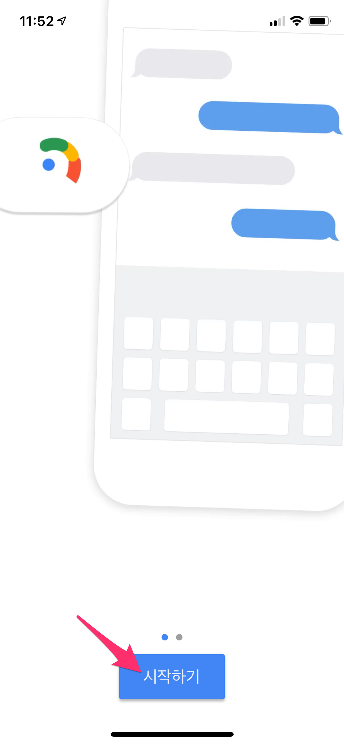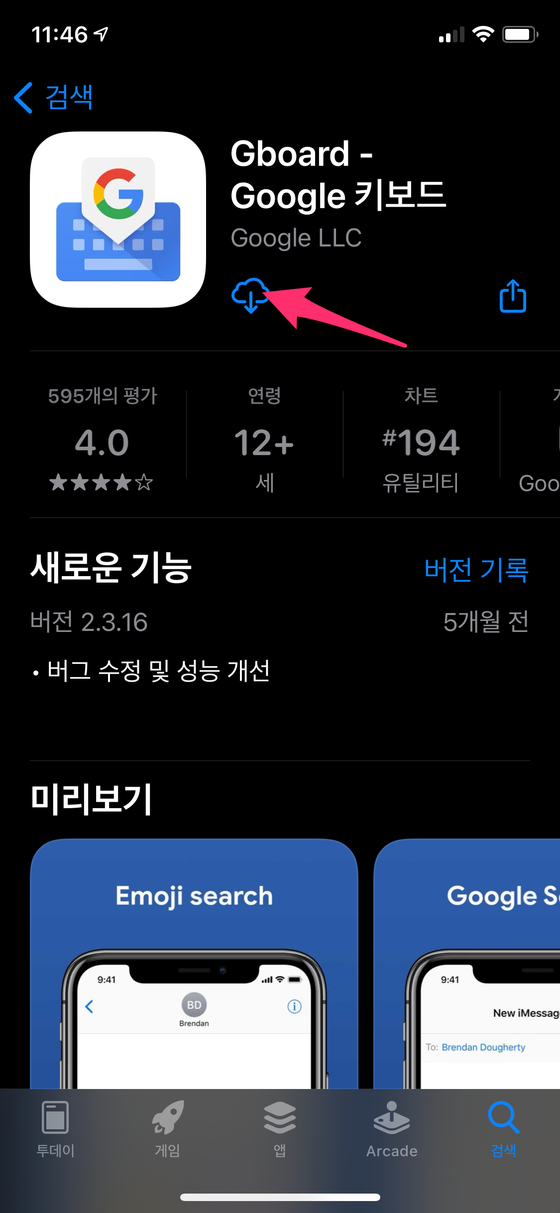 아이폰이나 안드로이드폰에서 앱스토어나 구글 플레이어에서 Gboard라고 검색하신 후에 설치 후에 시작하기 버튼을 선택합니다.