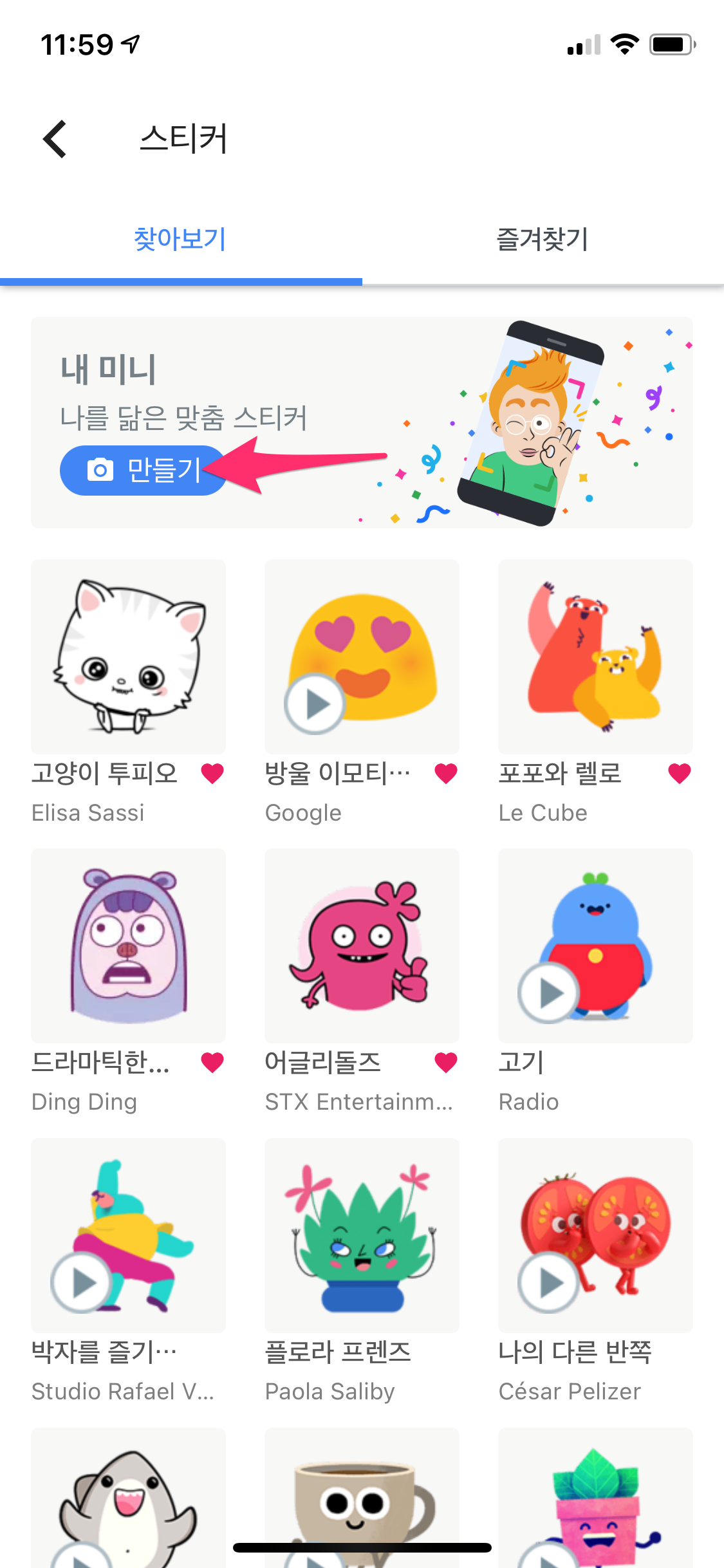 그리고 상단에 내 미니 만들기 버튼을 선택합니다.
