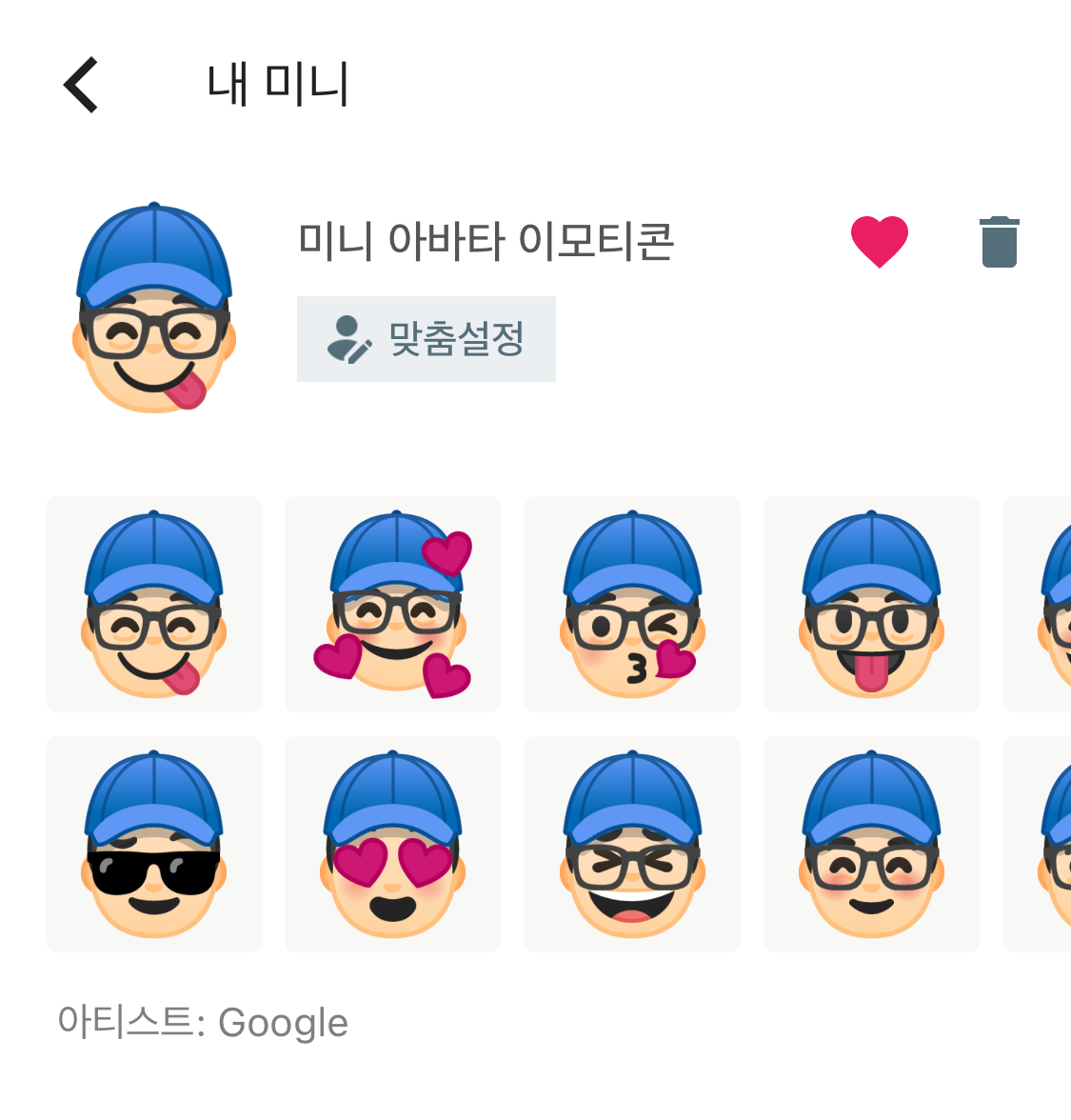 그러면 셀카로 찍은 내 사진을 가지고 캐릭터 스티커가 자동으로 생성됩니다.