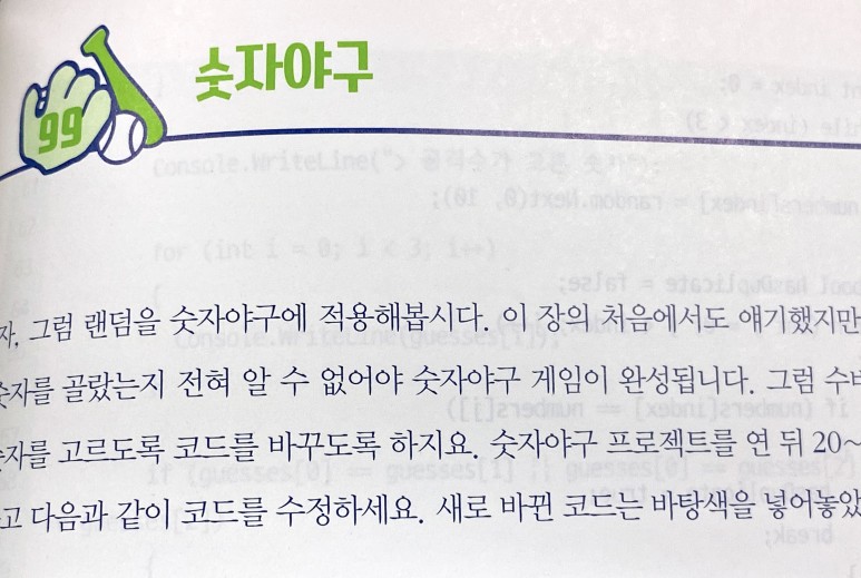 각 챕터에서 공부한 것을 기반으로 숫자야구를 조금씩 완성해야 합니다.