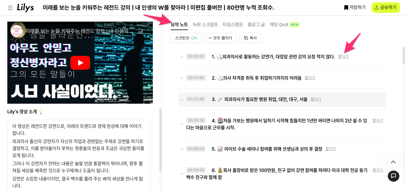 Lilys AI : 릴리스에이아이 - 영상을 넣으면 깔끔한 요약노트로