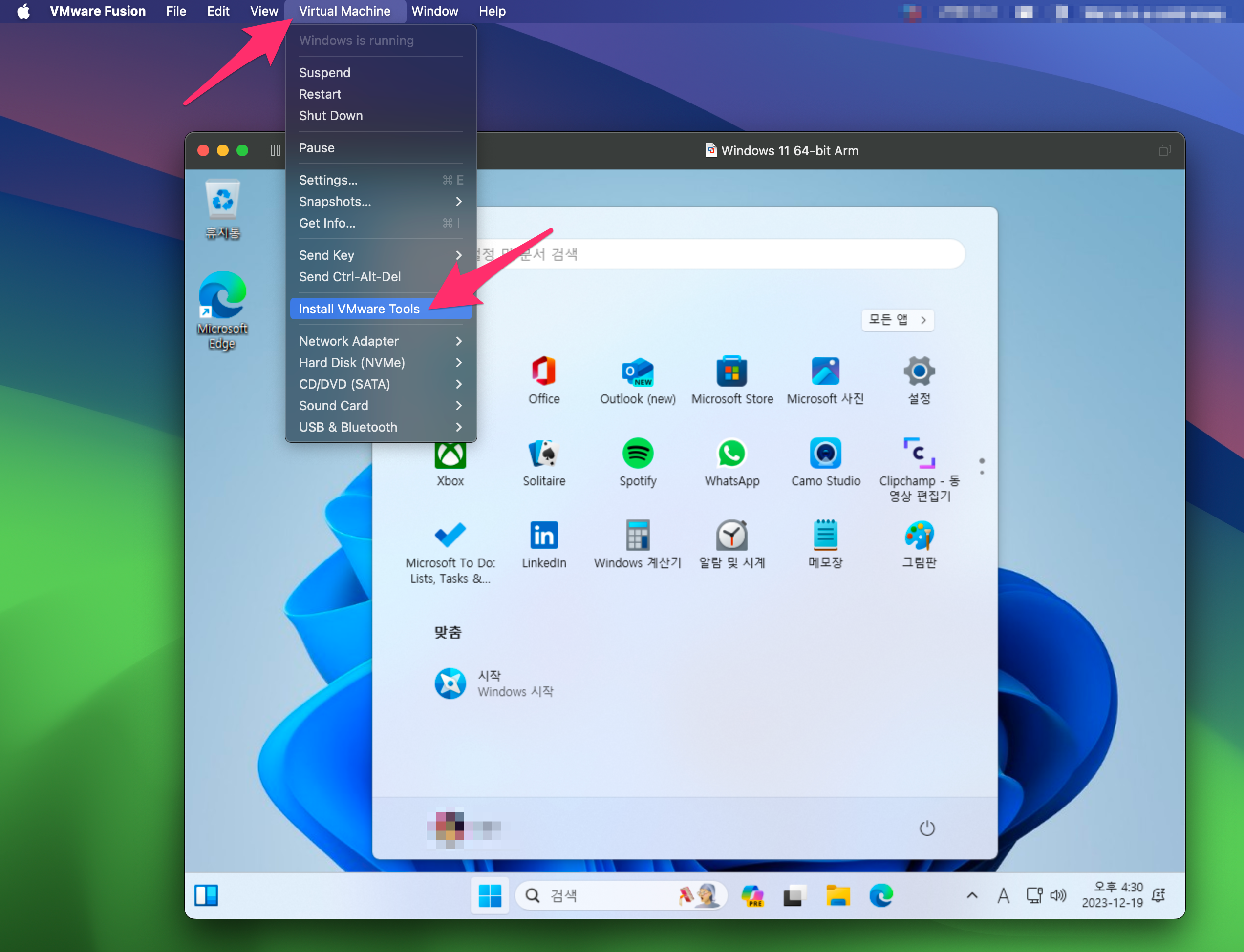 이제는 Windows가 필요할 때마다 VMware Fusion Player 13를 실행하여 해결하면 되네요... ㅎㅎㅎ