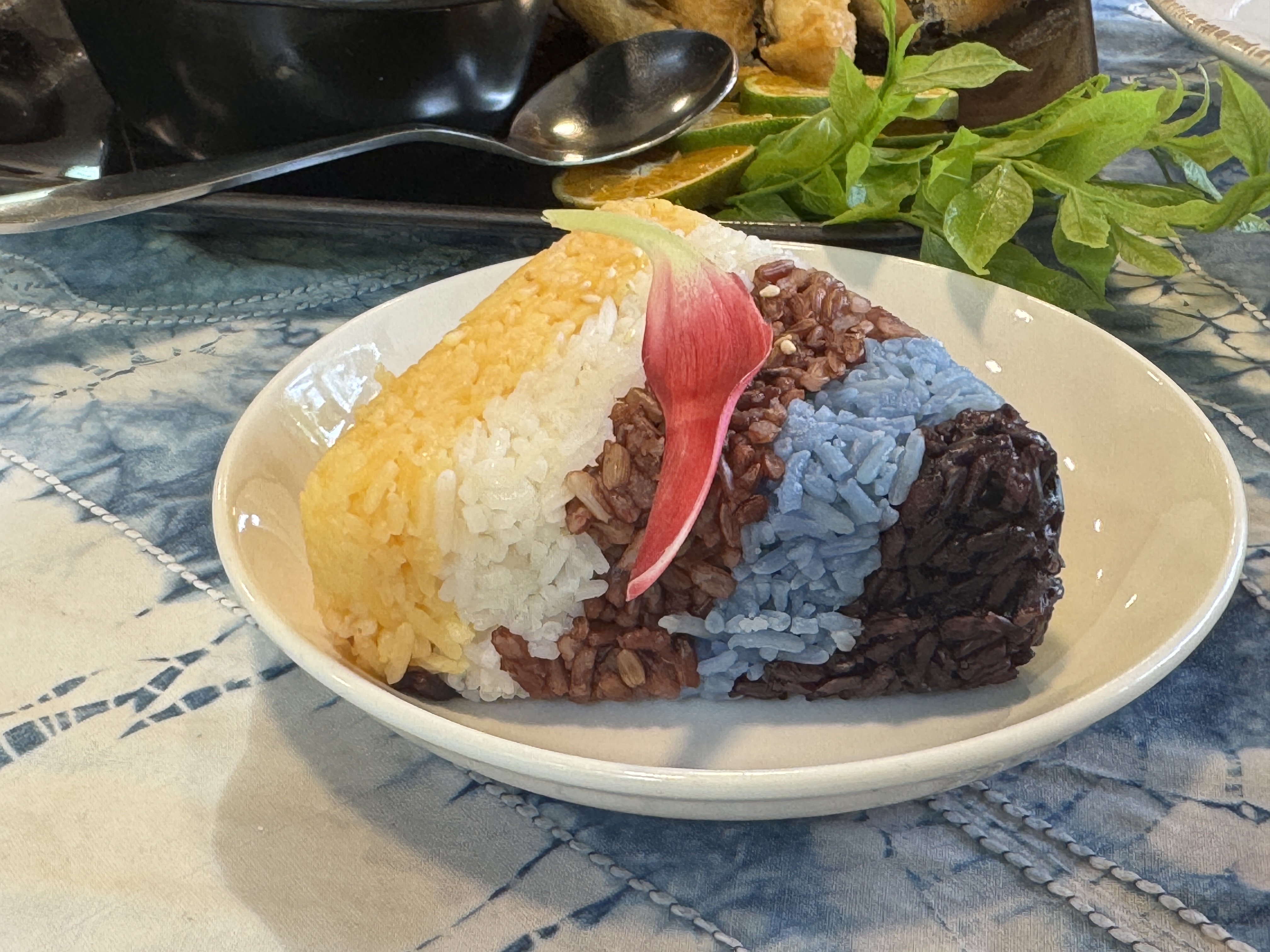 - 스티키 망고 라이스(망고 찹쌀밥) : 다섯 가지 색상의 밥과 신선한 망고가 어우러진 디저트로, 식사의 마무리로 딱입니다.