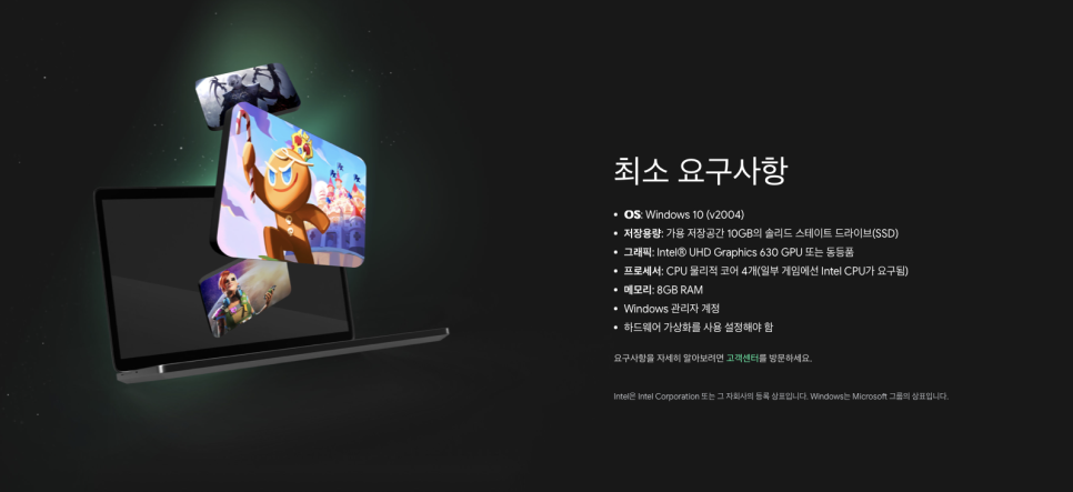 최소 PC 사항을 확인해 보시면 위와 같습니다.