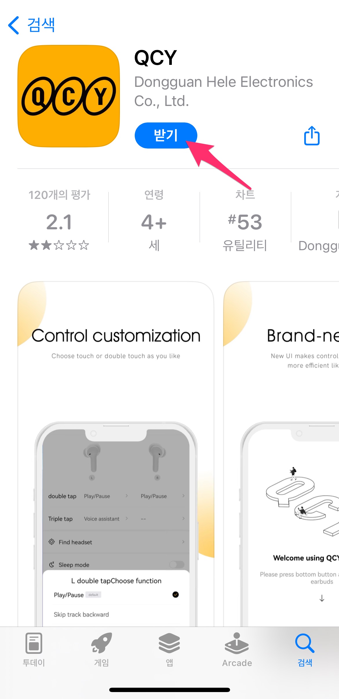 전용 앱인 QCY를 앱스토어나 구글 플레이에서 다운로드합니다.